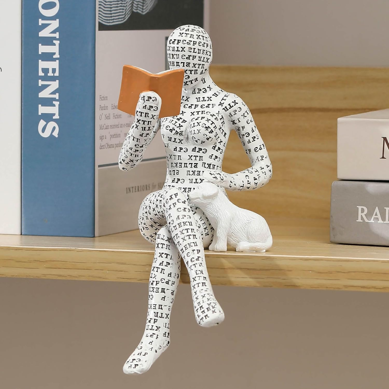 - [AESTHETIC DECOR] The reading women statue will be a special decor in your dining room or living room,office or bedroom, espacially fits on shelf and table. This sculpture looks like a woman reading a book. It is worth mentioning that this woman is covered with letters, which more intuitively shows the beauty and power of intellectual women.