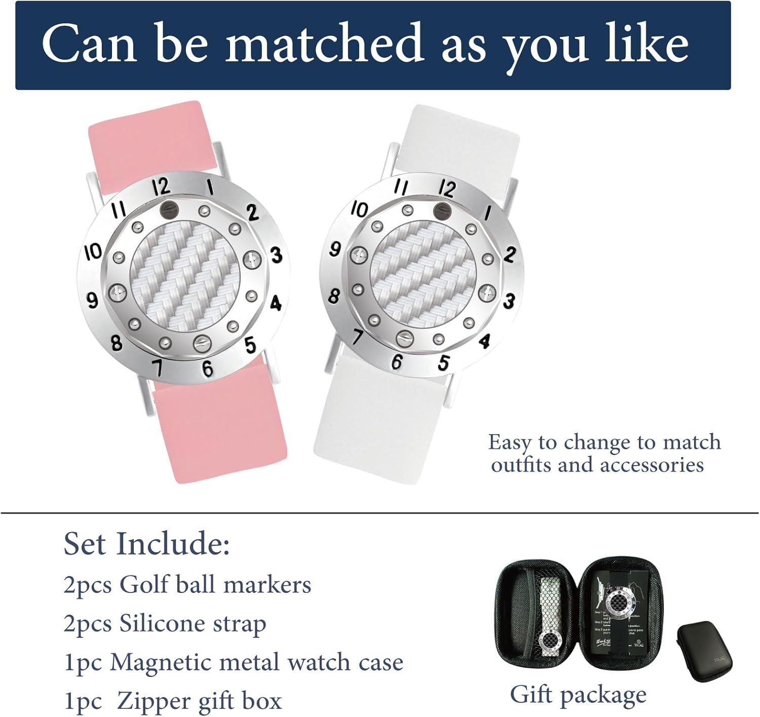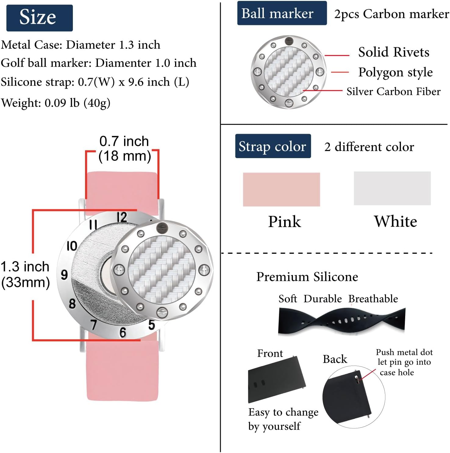 - ποΈ GOLF GIFTS: Special Carbon Fiber material ball marker, Fashion, unique, personalized design. Quality zipper box package. Set of golf ball markers and golf shot counter watch. (Size:3.2 inch x 4.5 inch x 1.3 inch) Golf gifts for men women golfer