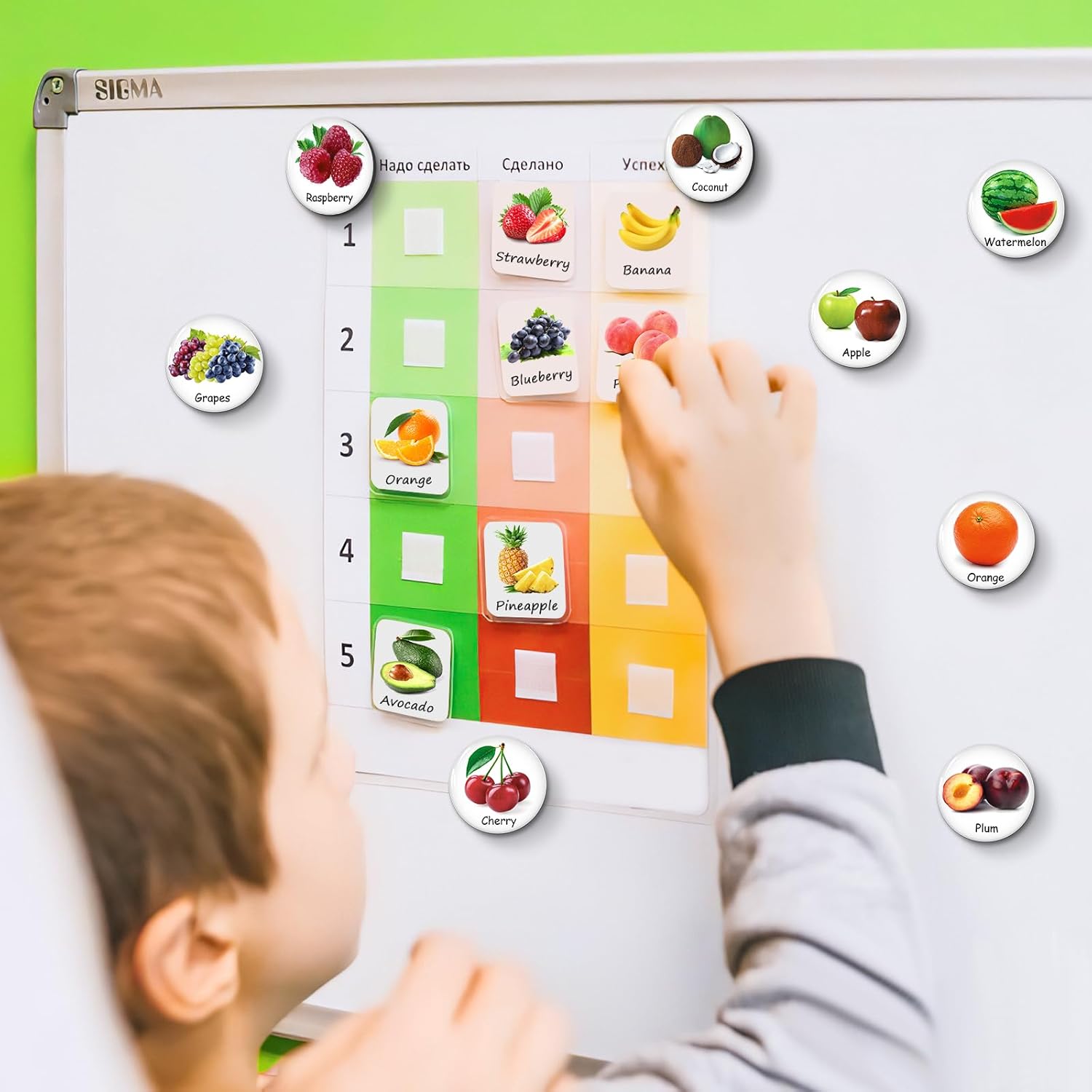 - FRUIT MAGNETS - 16 commonly used fruits + their names, you can enjoy this set of cute magnets with your kids!