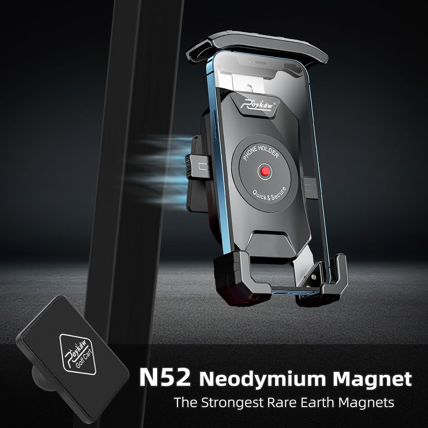 - The Strongest Rare Earth Magnets: This golf magnetic phone holder is magnetically attachable onto golf carts by dual N52 neodymium magnet. Compatible with All Brands Golf Cart Models.