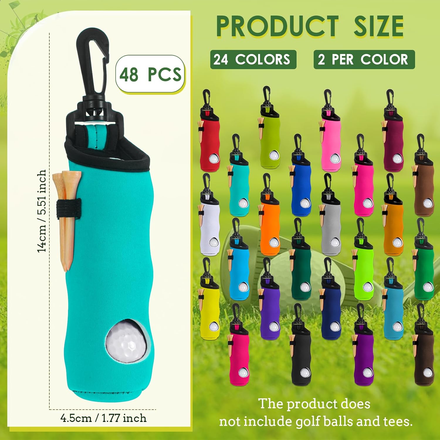 WILLBOND 48 Pcs Golf Ball Tee Holder Neoprene Golf Ball Pouch Golfs Balls Carry Bag Multicolor Portable Golfs Accessories for Men and Women, 24 Colors