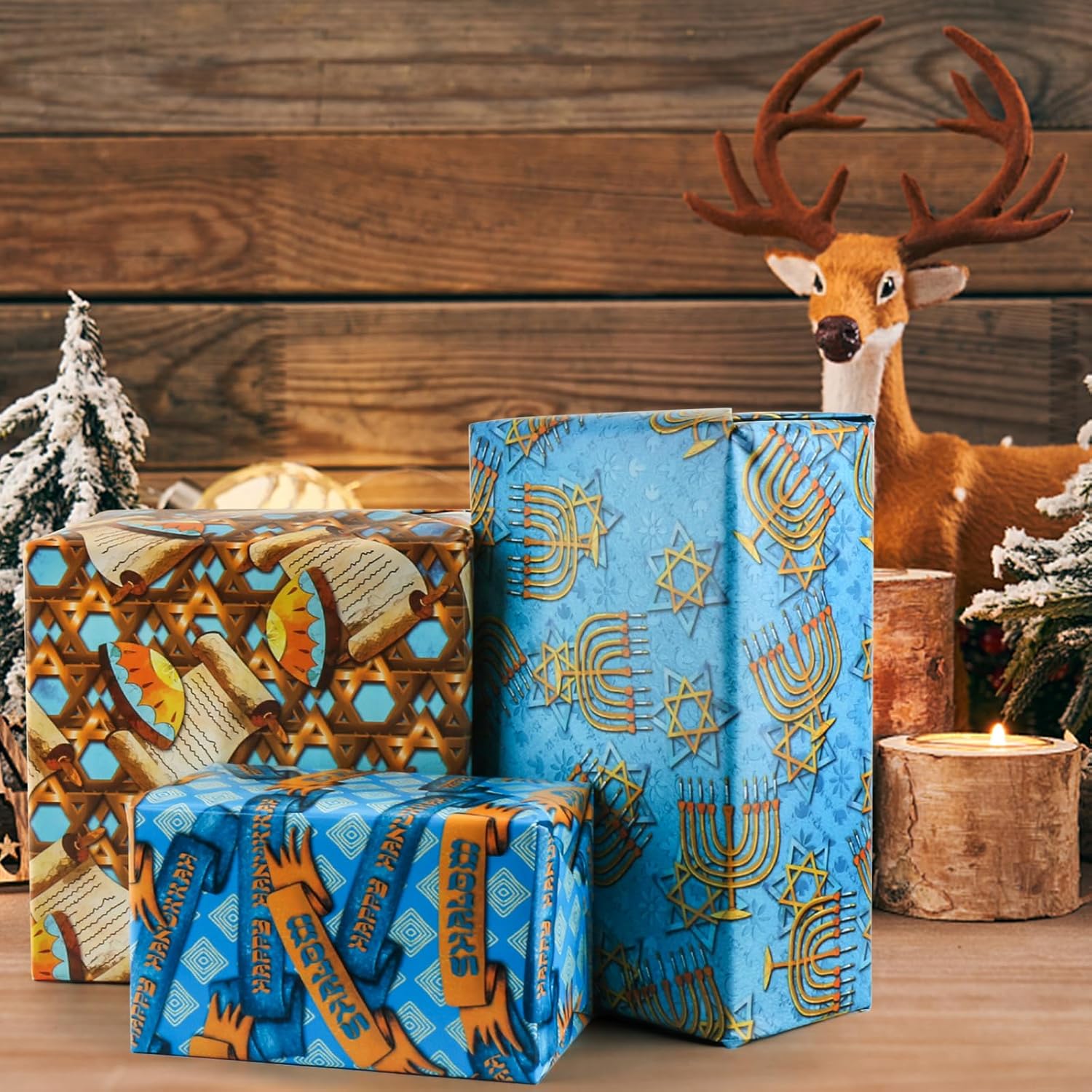 - High Quality: Made with High Quality paper,our hanukkah gift wrapping paper is created with high-quality art materials that are thick enough to prevent rips but not too thick to work with.