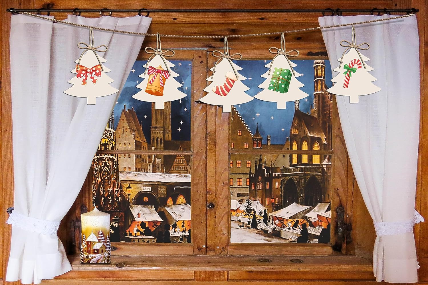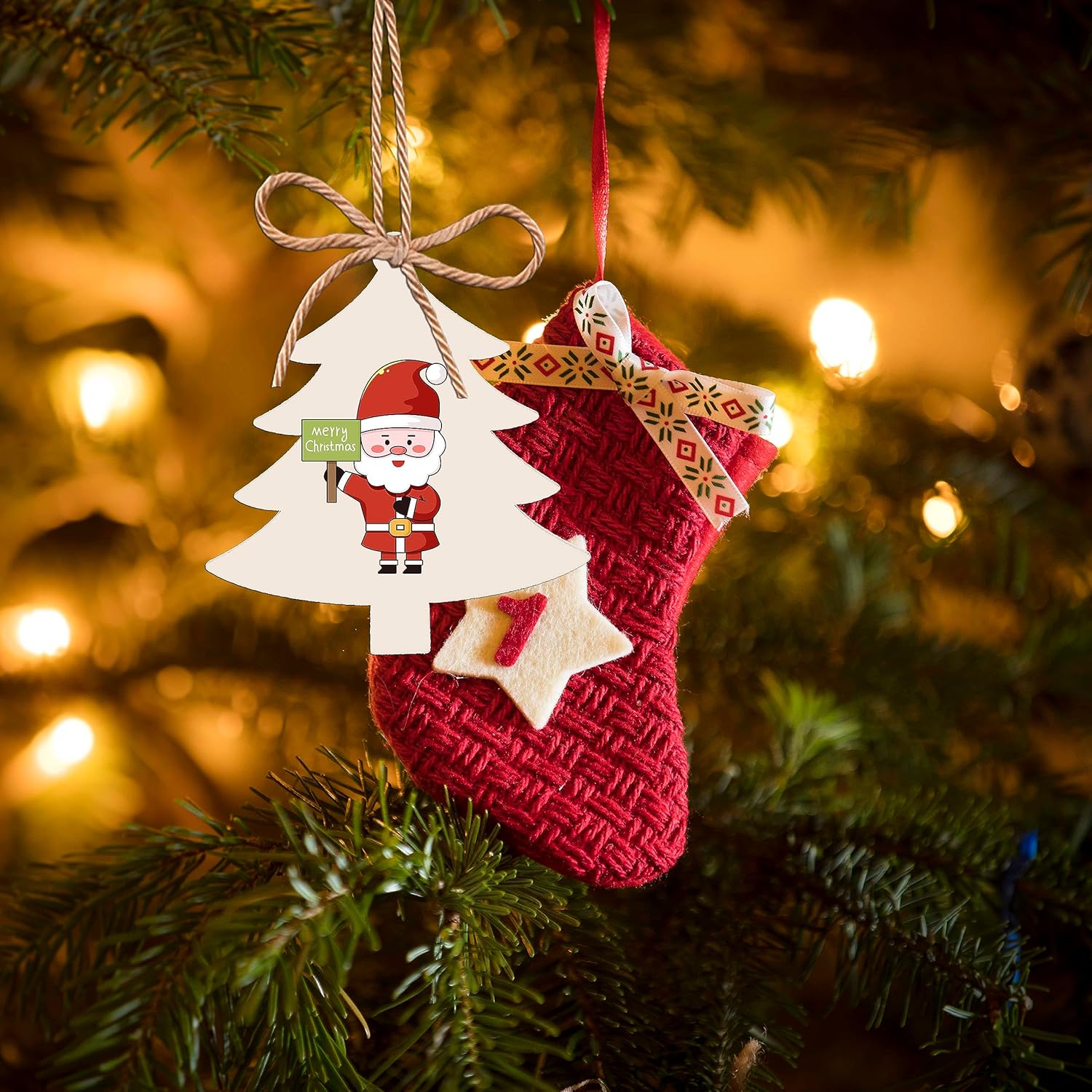 - 🎄【DIY】-These unfinished tree shaped wood cutouts are blank, easy for your to DIY pattern on them to create your own personalized crafts. These wood chips can be made into a variety of decorations according to your own ideas, such as: hanging on a gift box to highlight your creativity; Hang on the Christmas tree; Hang in the window; Hang on the closet; Hang on socks, etc., of course, you can also draw on the wood chip, boldly show your creativity.