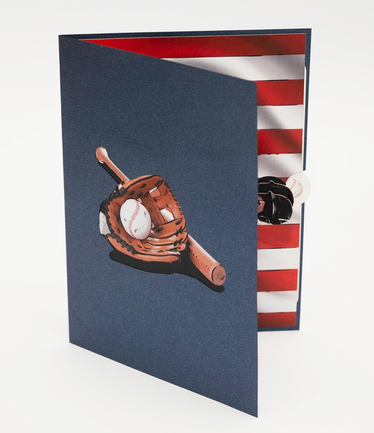 - Arriving in an envelope and protective plastic sleeve, our Baseball 3D Popup Card is designed for convenience and ready to be displayed and admired, hand-assembled by skilled artisans to embody the dedication and teamwork of the game itself.