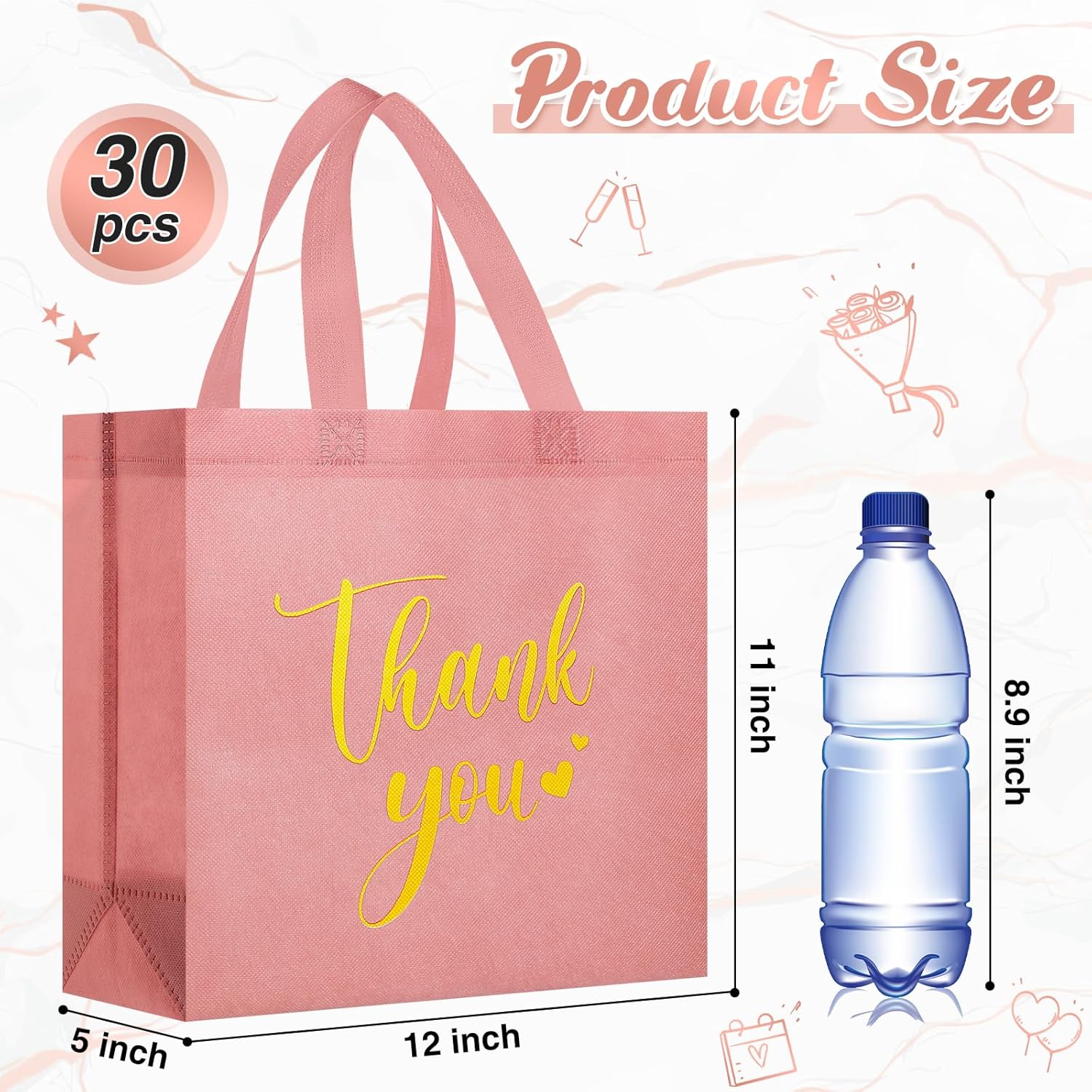 Sweetude 30 Pcs Thank You Gift Bags with Handles Bulk Reusable Goodie Bag Non Woven Foldable Handbag for Graduation Wedding Bridesmaid Gifts(11 x 12 x 5 Inch,Leather Pink)