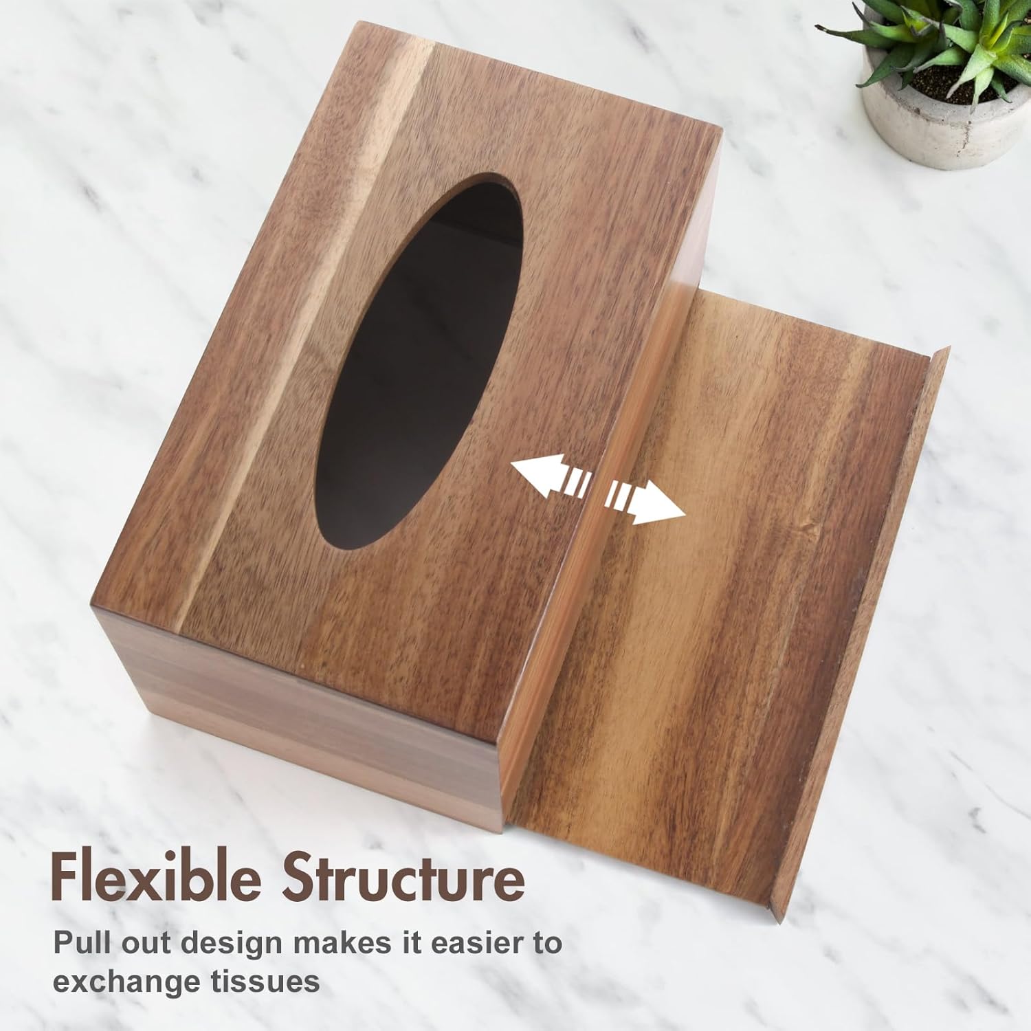Wooden Tissue Box Cover, Tissue Box Holder with Slide-Out Bottom, (Acacia) (Acacia-Rectangle)