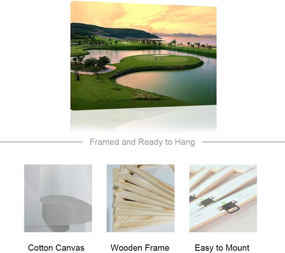 - 💖Easy to Hang: Stretch and frame painting canvas golf course wall art used for home wall decor. Each panel has a black hook already mounted on the wooden bar for easy hanging.
