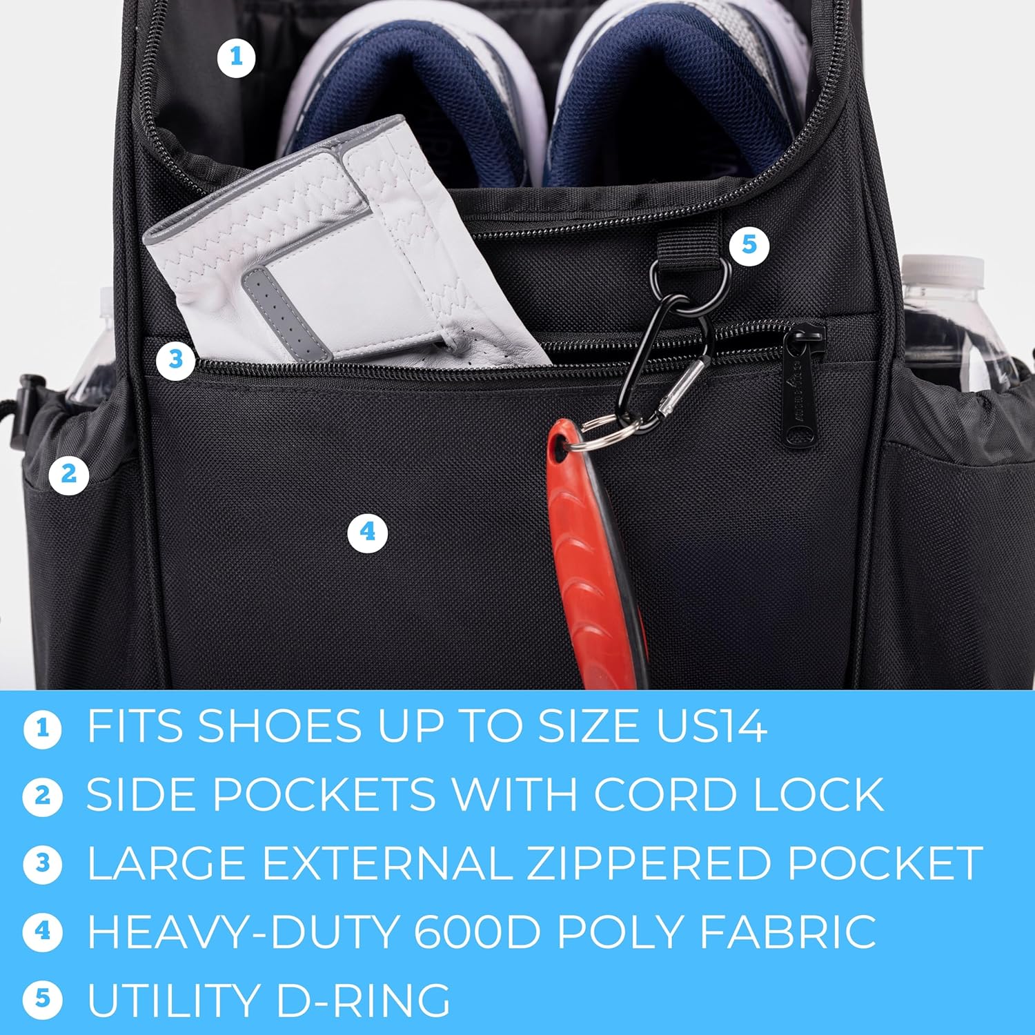 - EASY ON YOUR WALLET BUT BUILT TO LAST - We engineered our golf shoe bag to be cheap in price, but not in quality. Constructed of durable 600D polyester fabric that is meant to last.