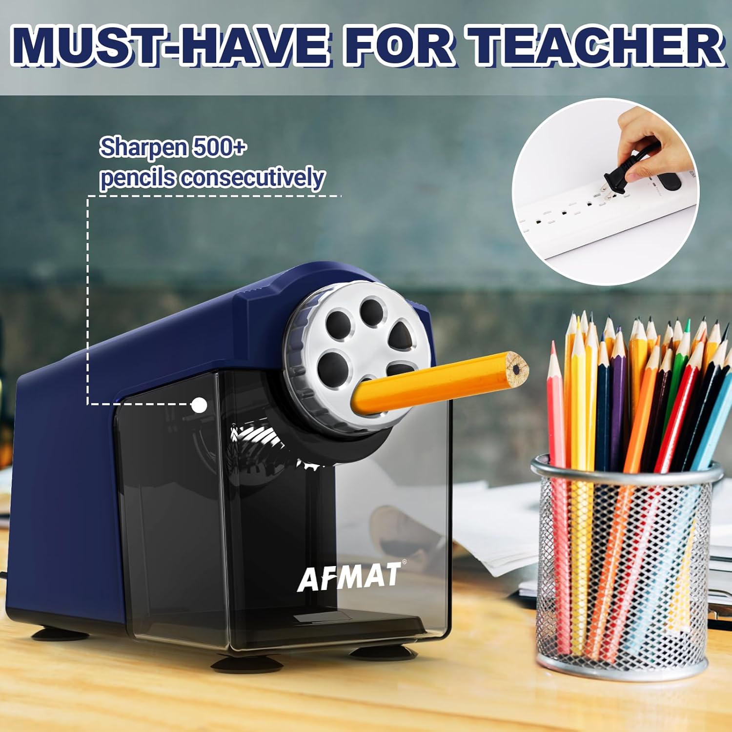 AFMAT PSX4 Electric Pencil Sharpener Heavy Duty, 6-Hole Classroom Pencil Sharpener for 6-11mm Pencils, Auto Stop Pencil Sharpeners Plug in, 10000 Sharpenings, Save Colored Pencils, Blue