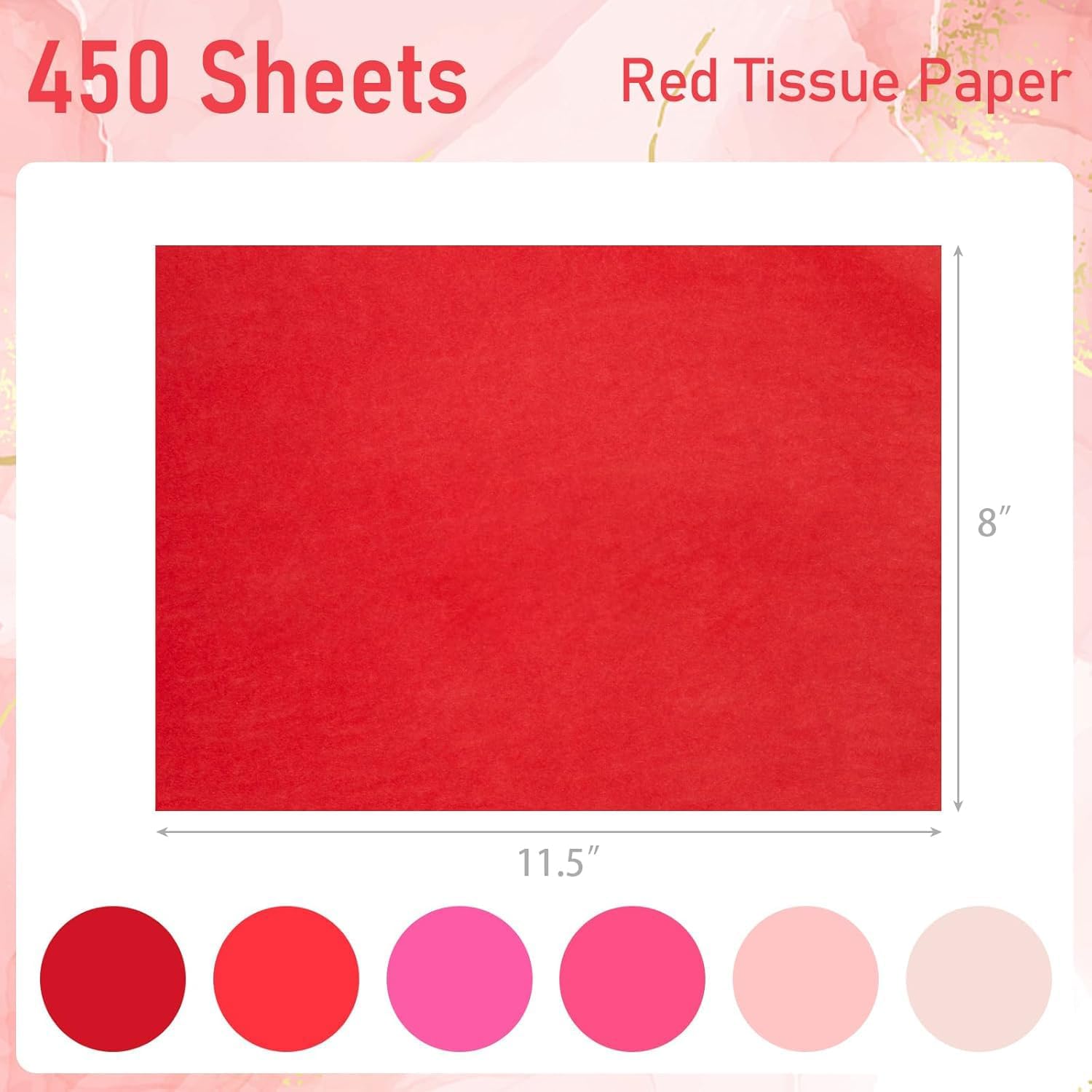 - Elegance in Red - Each paper sheet measures 11.5 x 8 inches and features 6 different shades of red within the series, totaling 450 pieces. These versatile colors are perfect for a wide range of DIY projects and gift wrapping, making them particularly fitting for Valentine's Day gifts.