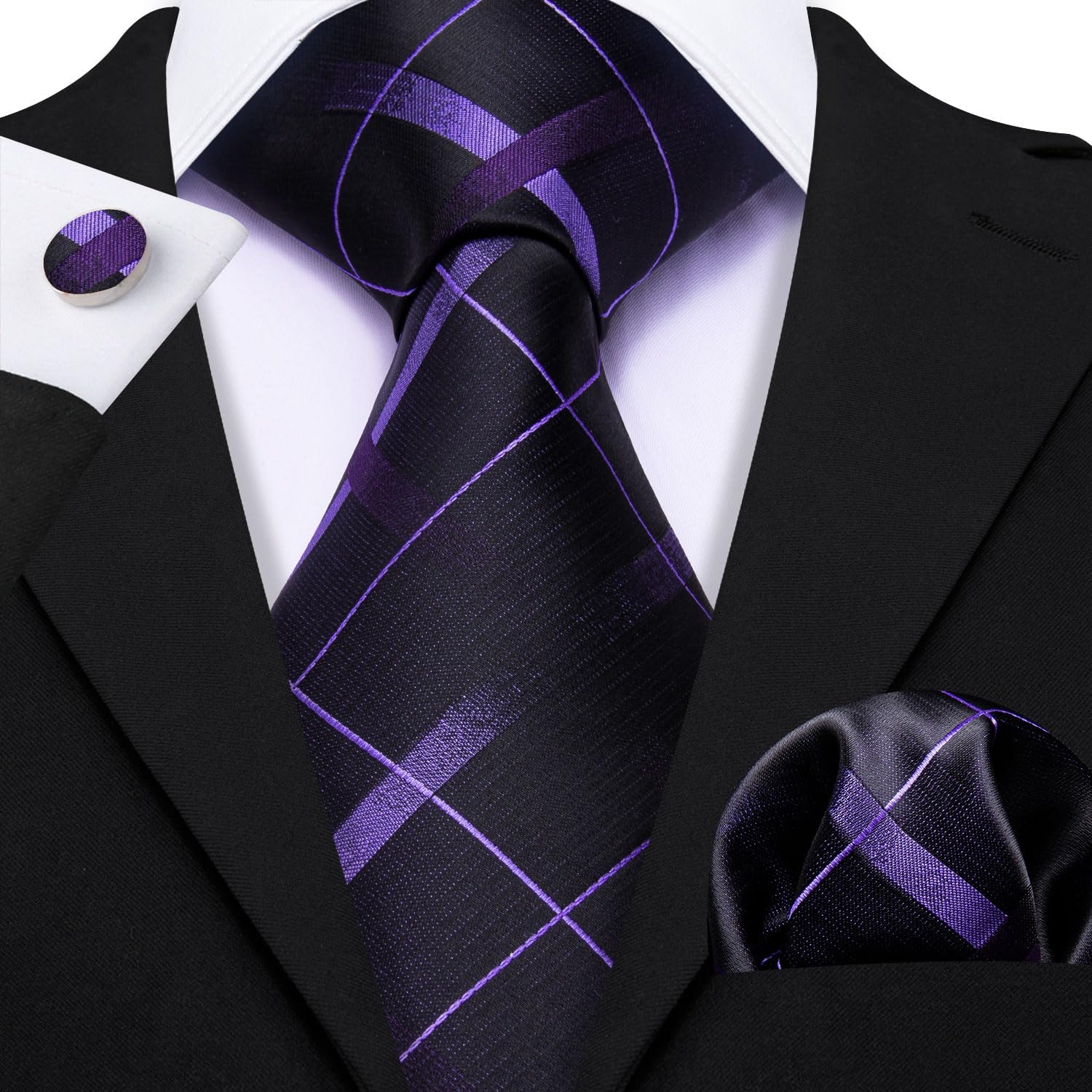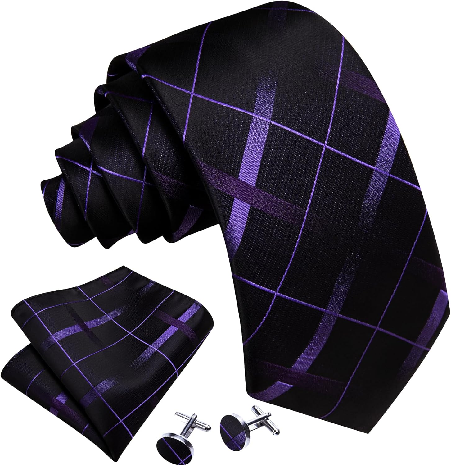 Barry.Wang Designer Classic Ties for Men Set Formal Pocket Square Cufflink Check Plaid
