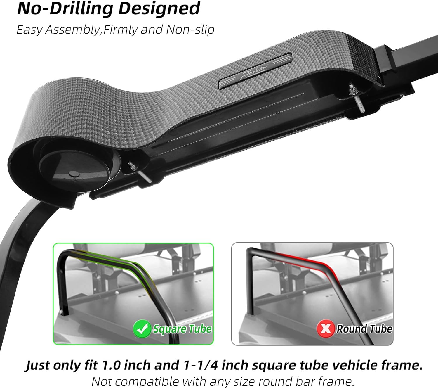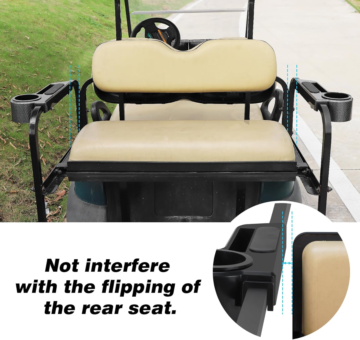 - Universal Compatible: for 1" square frame or 1.25" square frame golf cart, Universal fitment for EZGO/Club Car/Yamaha golf cart with rear seat kit. ( Note: This golf cart armrest will not interfere with the flipping of the golf cart rear seat; AND NOT fit for any golf cart with round bar or frame. )