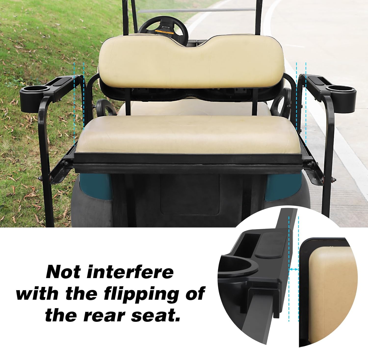 - Universal Compatible: for 1" square frame or 1.25" square frame golf cart, Universal fitment for EZGO/Club Car/Yamaha golf cart with rear seat kit. ( Note: This golf cart armrest will not interfere with the flipping of the golf cart rear seat; AND NOT fit for any golf cart with round bar or frame. )