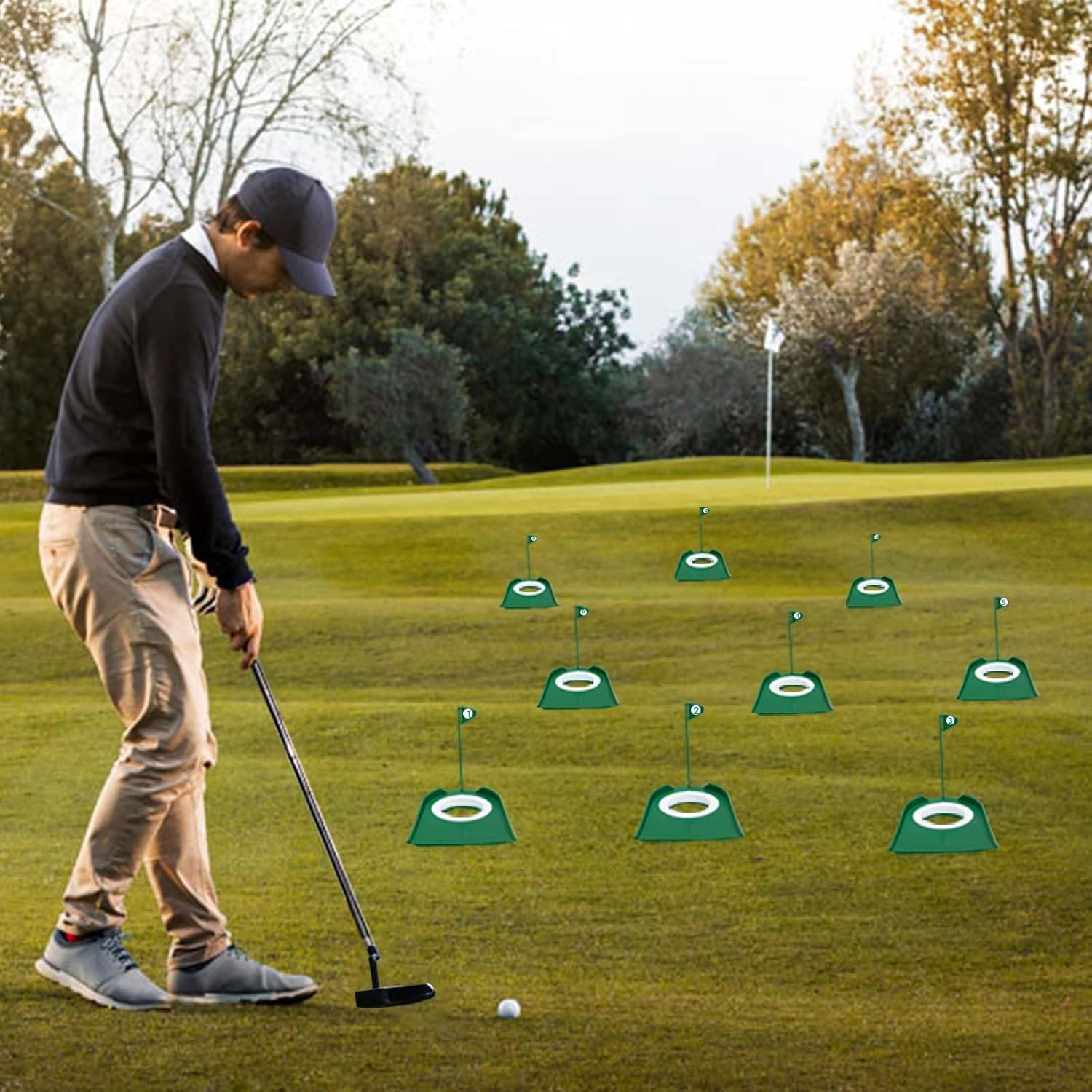 - ⛳【Functional and Practical】The additional inner ring can improve the precision of putting practice and helps you better during the practice. Removable flags with numbers are easy to store and move around, allowing you to better determine the order of your approach shots as you golf! Suitable for a variety of occasions, including but not limited to home, office, backyard, garden, garage, gym, indoor and outdoor.
