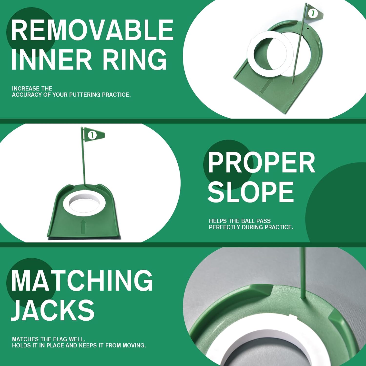 - ⛳【Proper Slope】The perfect slope of the putting training hole allows you to enjoy the fun of putter game with your whole body and mind, no matter you are indoor or outdoor. Golf putting cup meets any of your needs, so that you can have a good putting in any place.
