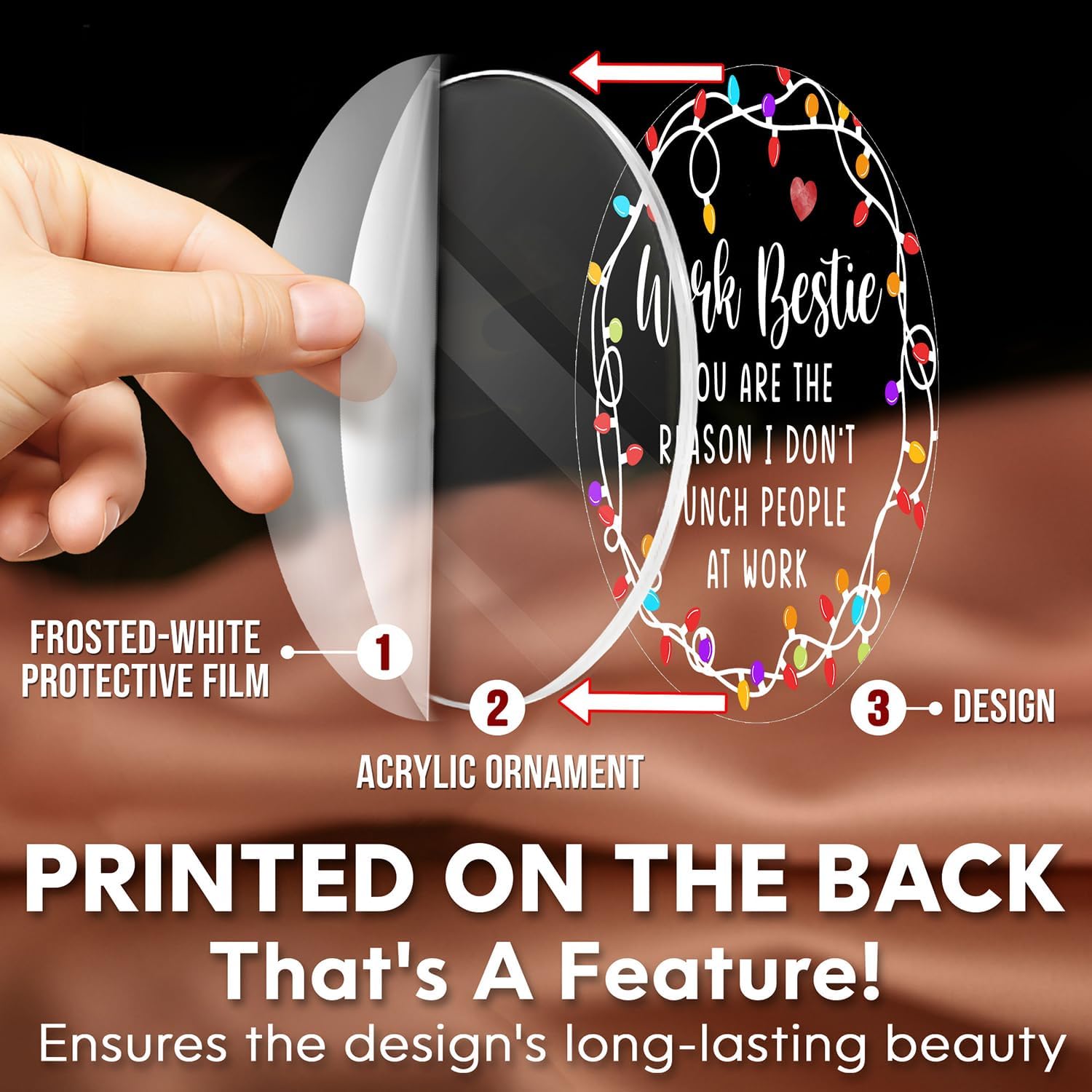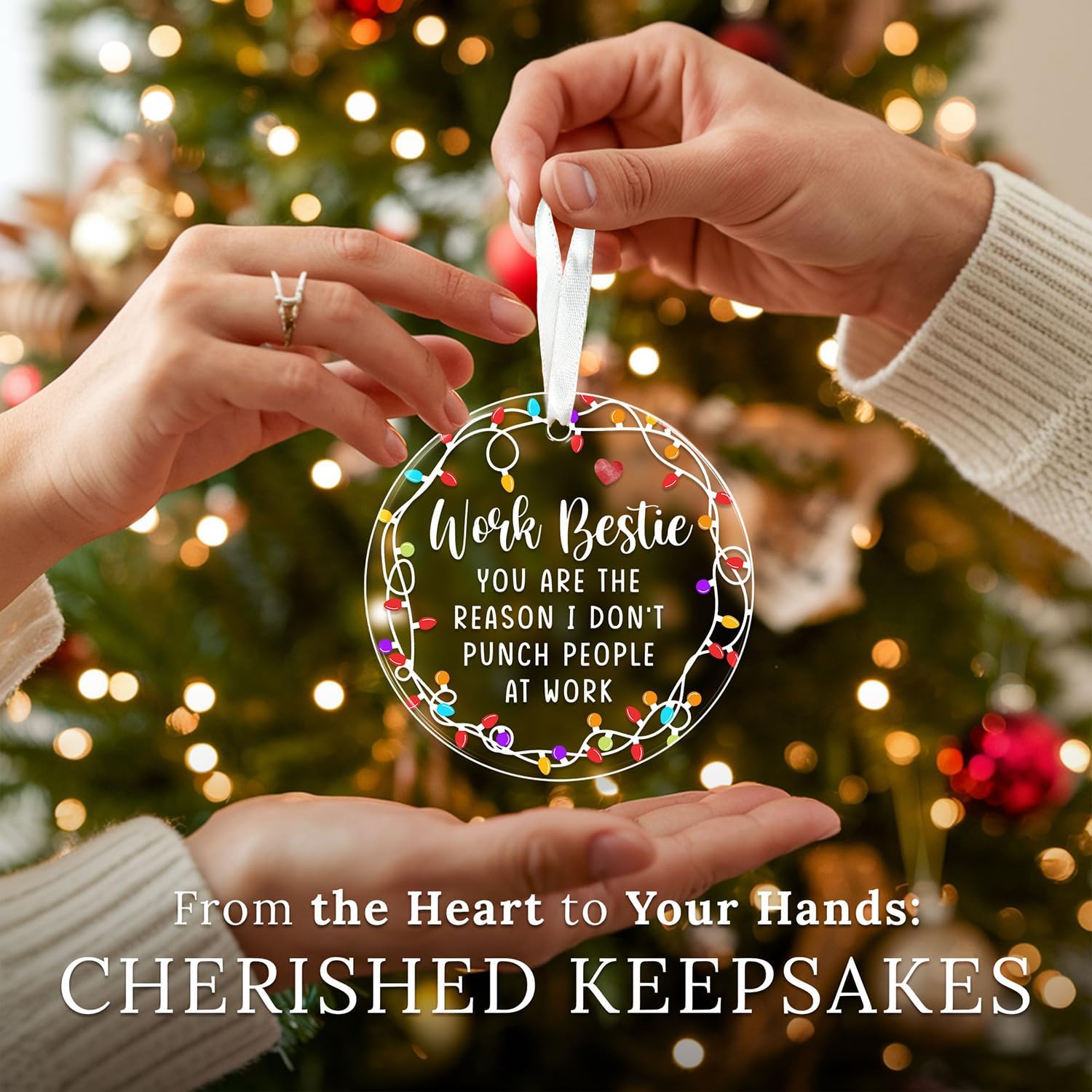 HEXMOZ Work Besties Gifts for Women, Work Friends - Coworker Ornament - Christmas Coworkers Gifts, White Elephant, Secret Santa Office Ideas for Work Friends - Acrylic Ornament 2025