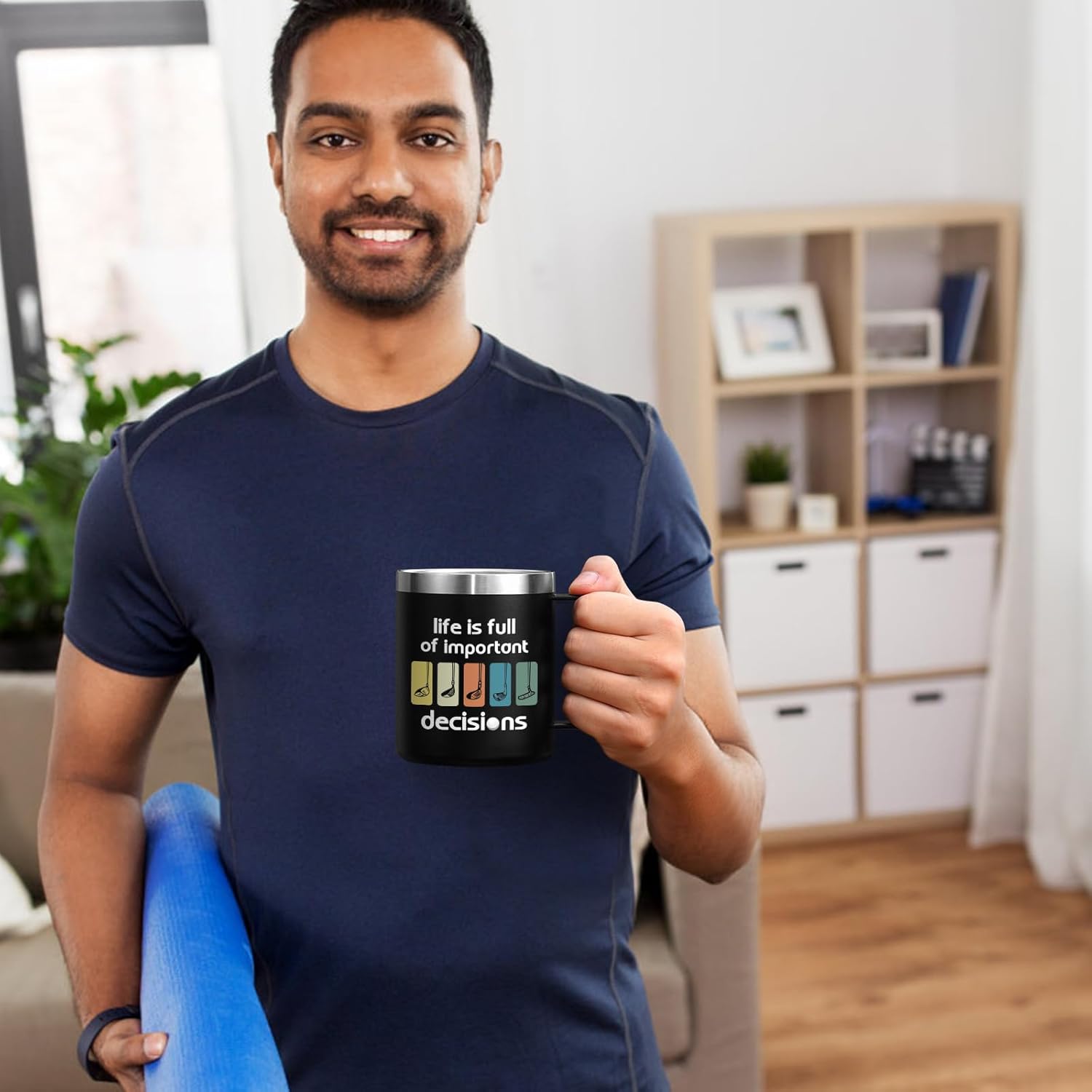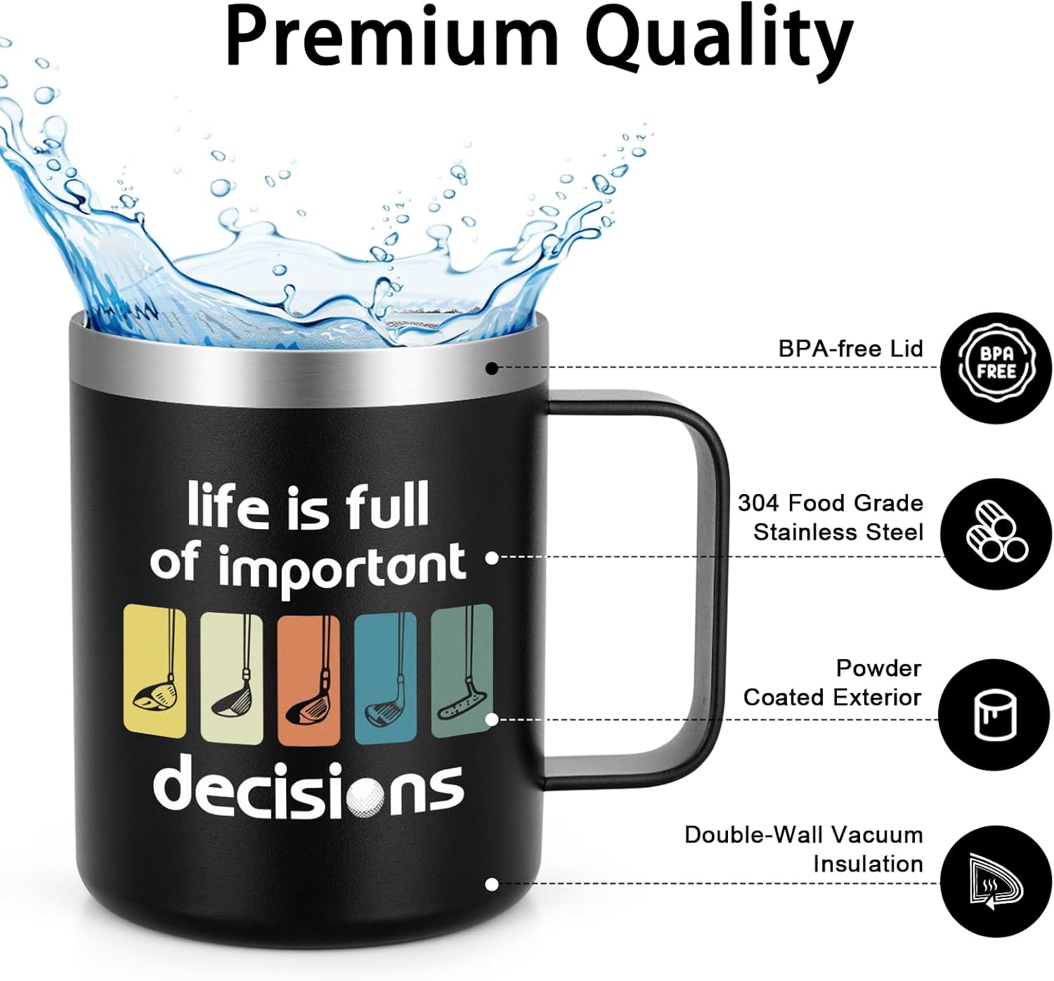 Lifecapido Golf Stainless Steel Coffee Mug, Life is Full of Important Decisions - Golf Gifts Birthday Gift Christmas Gifts Father's Day Gift for Men Dad Golfer Grandpa Boss Coworker (12oz, Black)