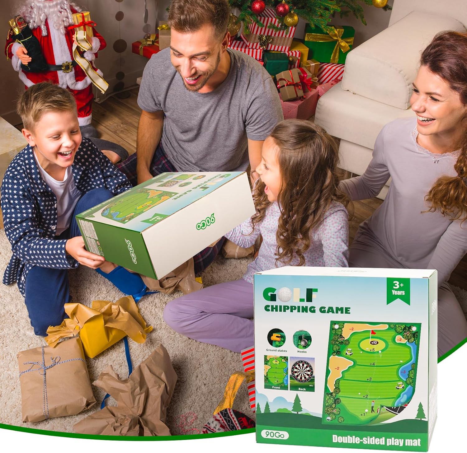 - 【Double Sided design】A fun game that combines darts with golf game play,with 2 game maps - front casual golf hitting mat mode, dart zone board mode on the back.Not only great for golf, but it can also be used as a toss game toy