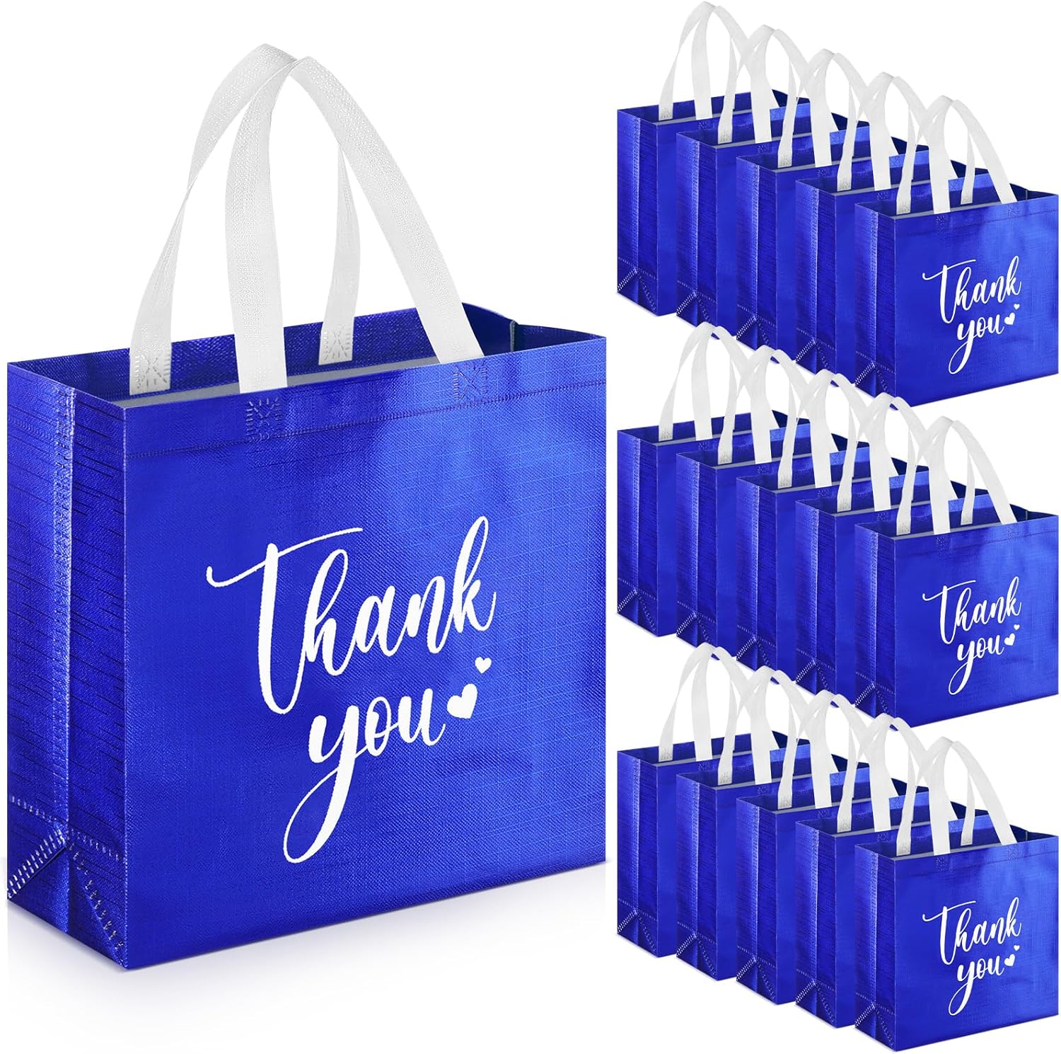 - Applicable for Parties and Daily Life: these thank you tote non woven bags are ideal for weddings and bridal showers, also suitable for birthday parties, baby showers, Thanksgiving, graduation ceremonies, afternoon tea parties, business banquets and other occasions; There is a large enough capacity to hold gifts, jewelry, lipstick, souvenirs, toys, clothes, snacks, candy and more, providing you and your guests with a wonderful party atmosphere
