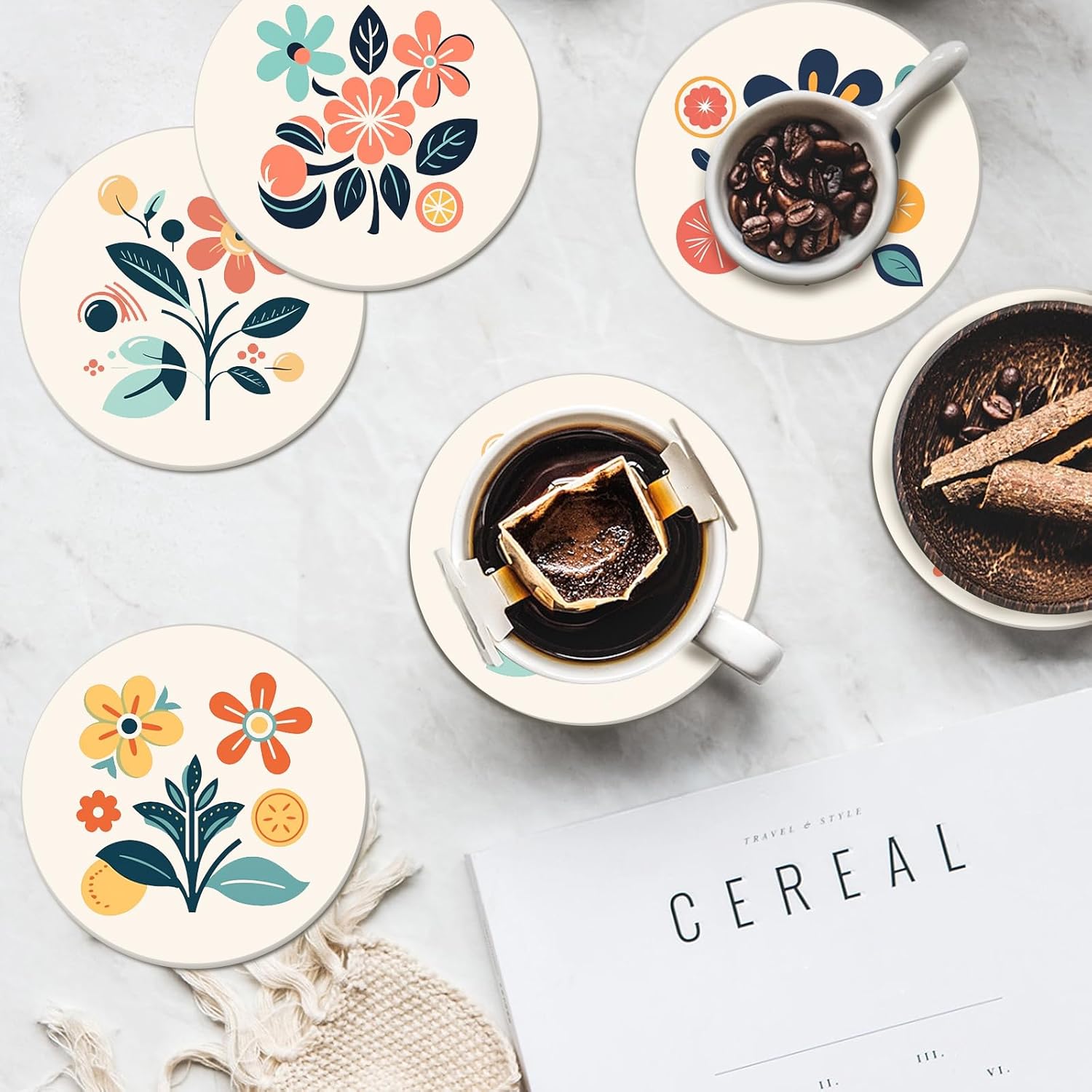 - 🌺【STYLISH AND FUNCTIONAL】This set includes 6 round ceramic coasters featuring a beautiful Boho floral pattern. They not only protect your furniture but also add a touch of elegance to your home decor.