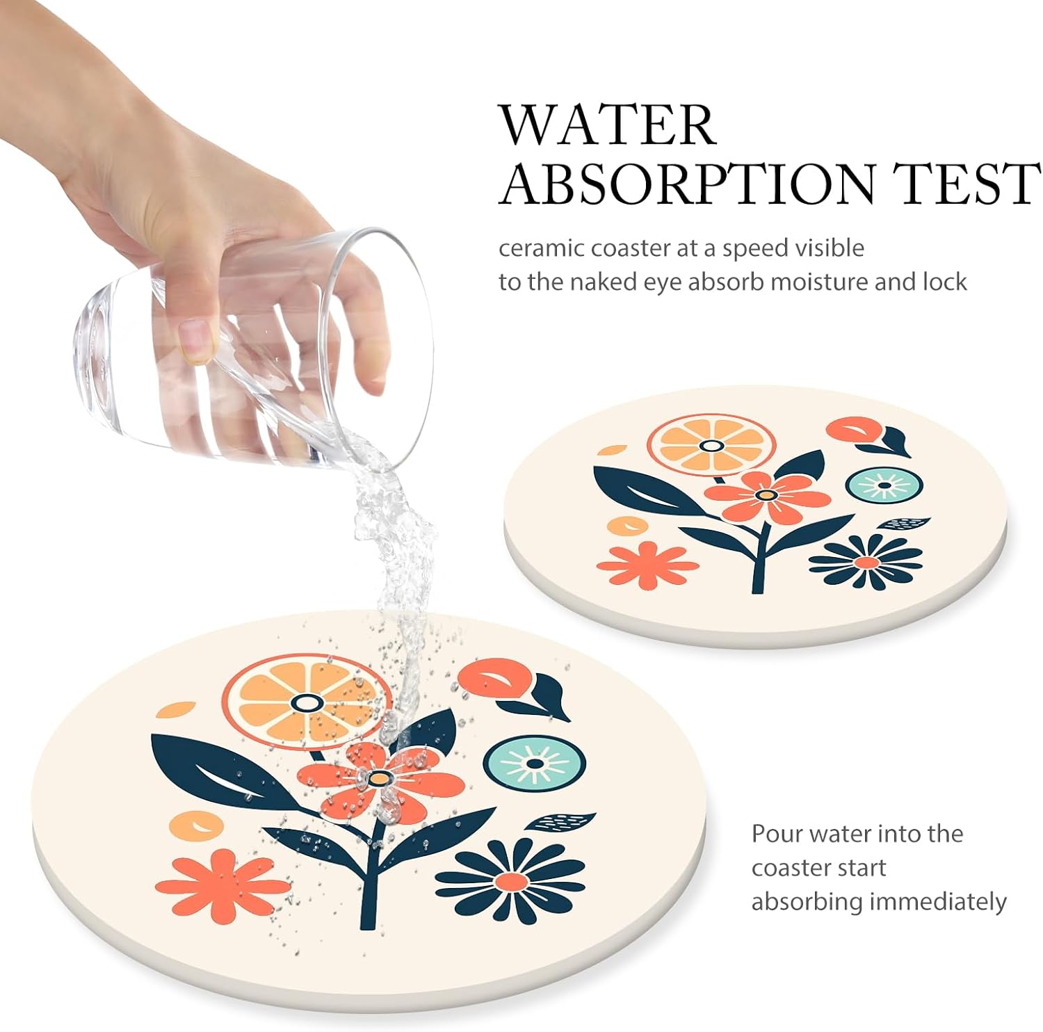 - 🌺【SUPERIOR ABSORBENCY】Made of special absorbent ceramic stone, these coasters are more absorbent than sandstone. They can easily soak up any condensation or liquid from your icy cup, keeping your desktop dry and clean.