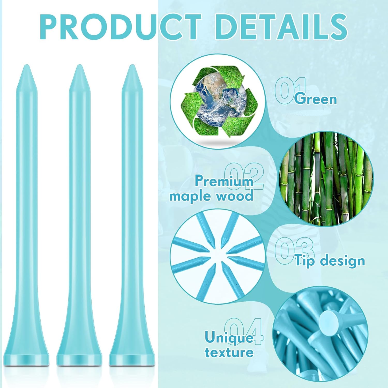 Jenaai 200 Pcs Golf Tees Bamboo Golf Tees Professional Golf Tees Bulk for Women Golf Club Accessories
