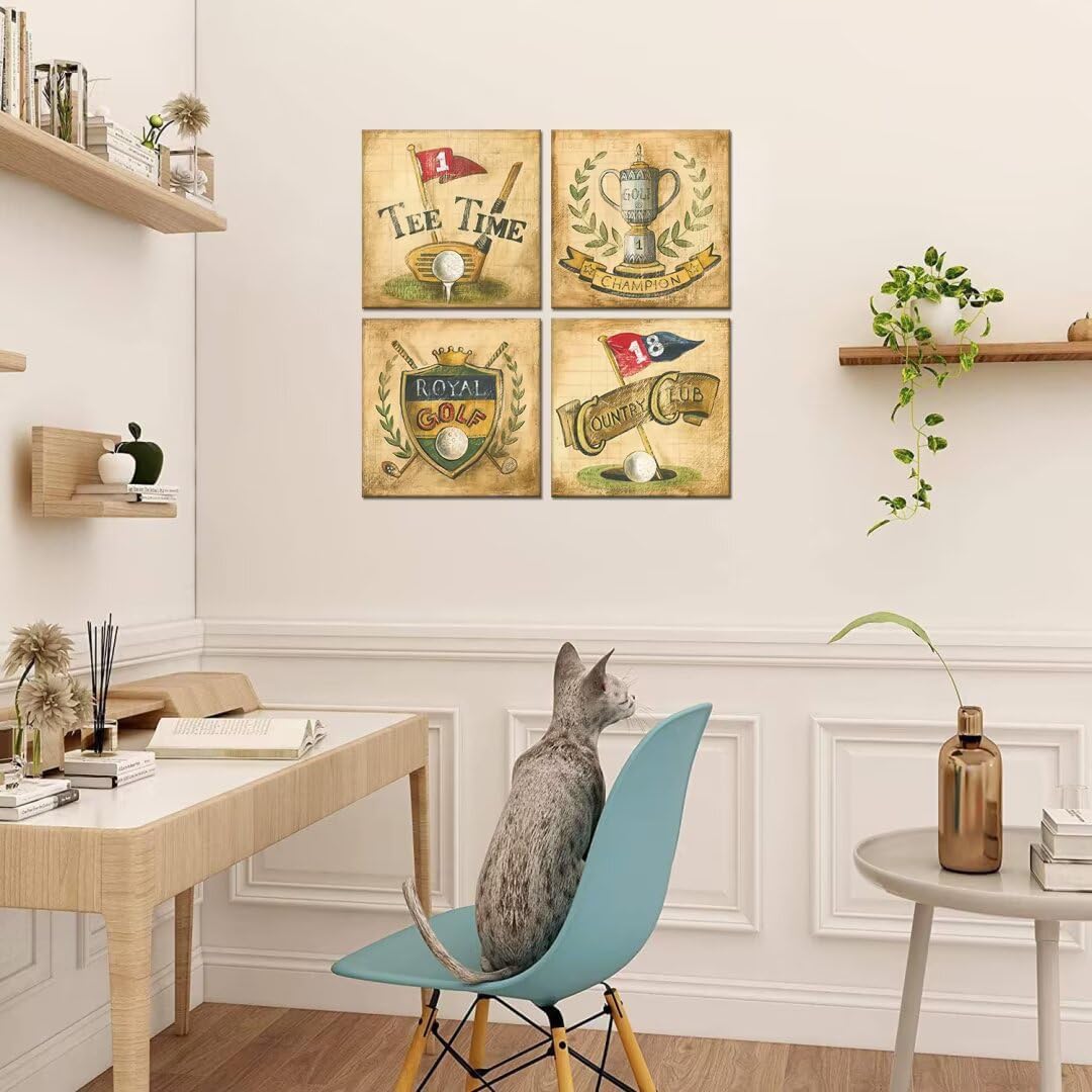 Pankila Usa Golf Wall Art for Country Club Golf Canvas Wall Decor Tee Time and Champion Abstract Royal Golf Wall Painting for Living Room Bedroom Home Decorations Framed Artwork (20''W x 20''H x 4)