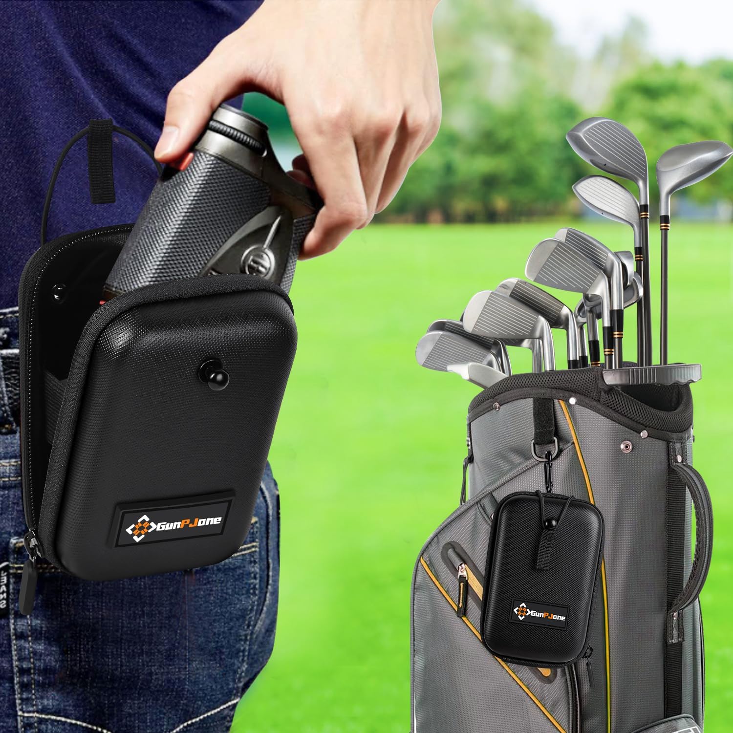 - This portable rangefinder case with carabiner and a belt loop can be hung on the golf bag or through the belt. It can also be used to hold golf balls, convenient for you to play serveral round on the course.