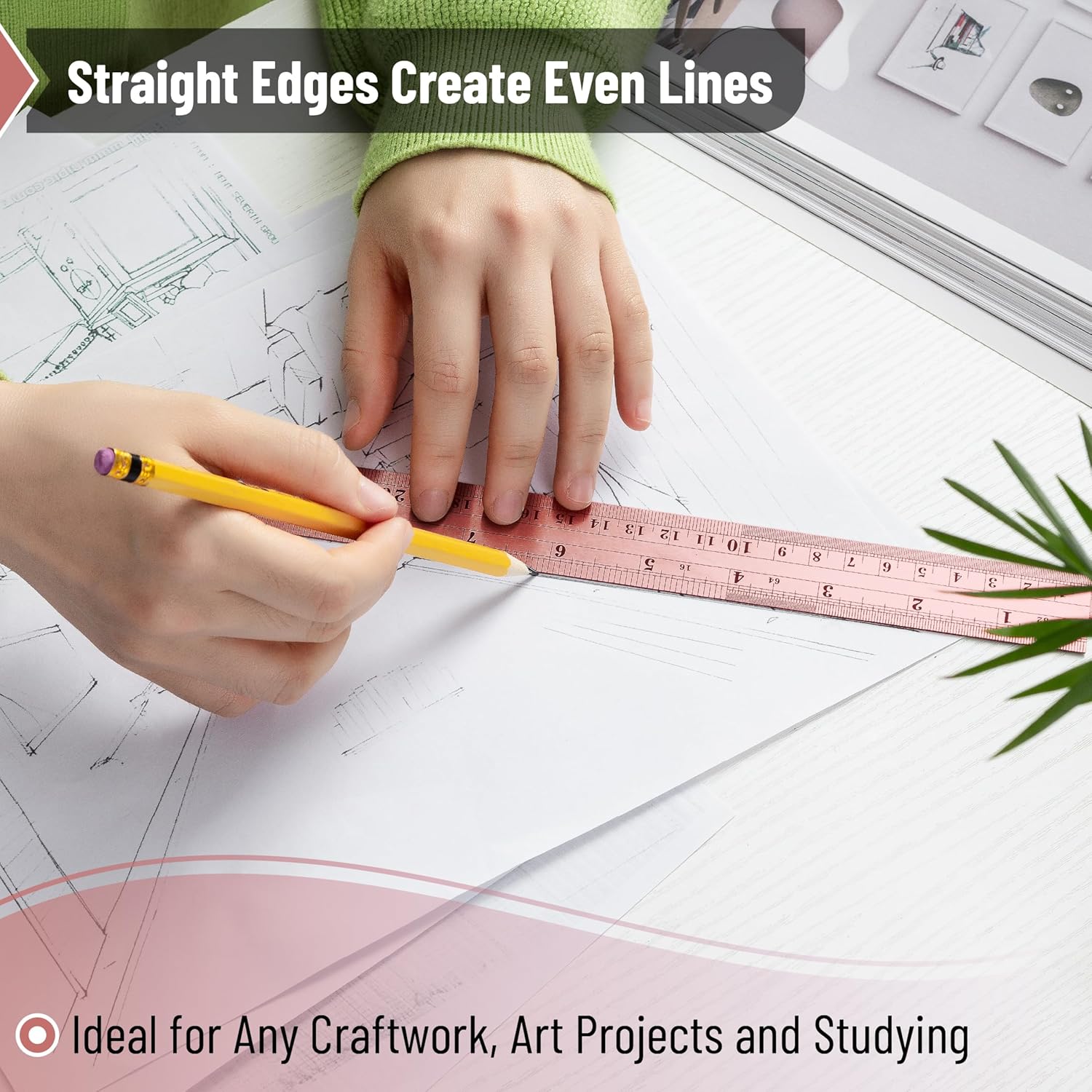 - Each ruler features both metric (cm/mm) and imperial (inches) measurements, etched into the surface for easy readability and accurate measurements, making them perfect for any project.