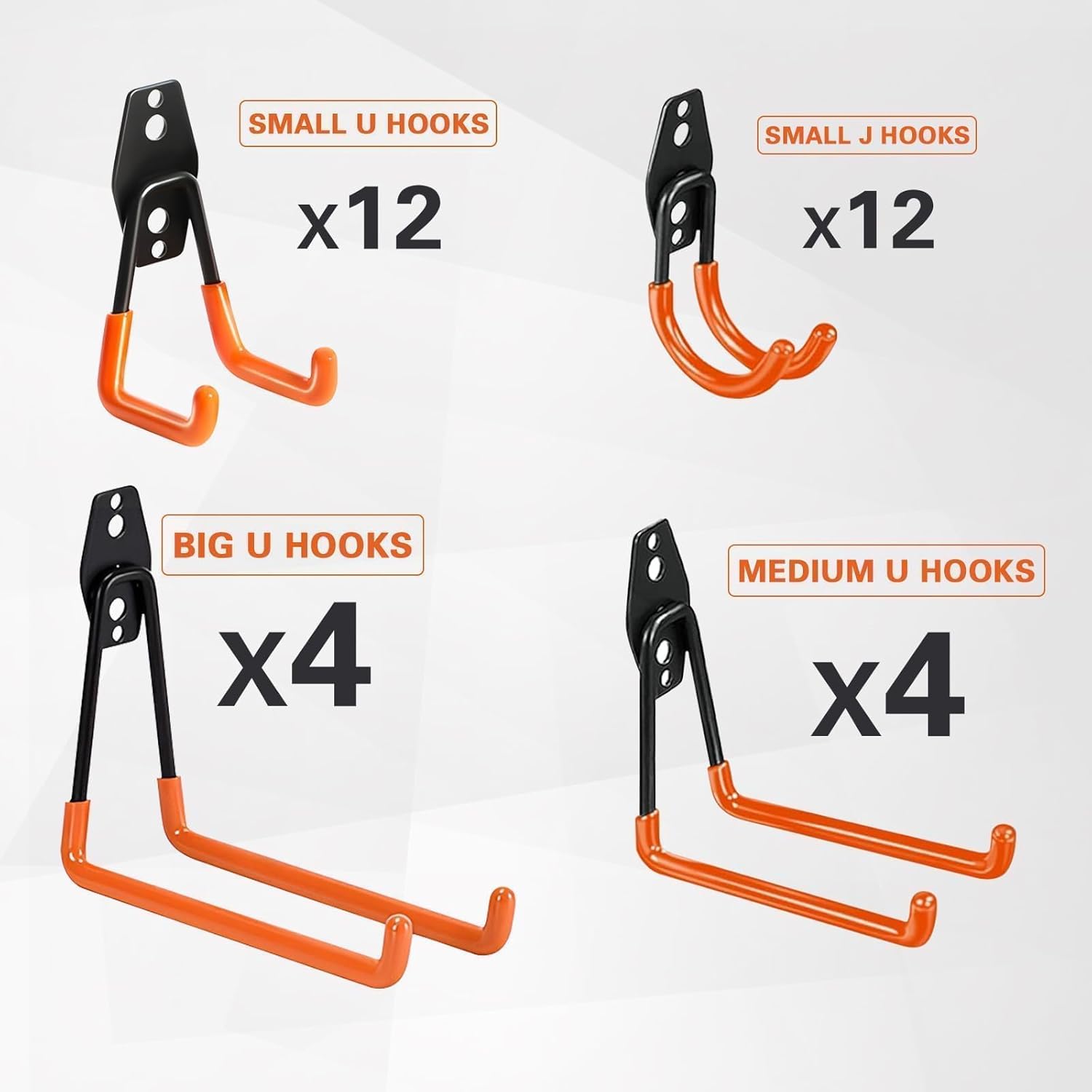 Steel Garage Storage Hooks - 32 Pack Anti-Slip Coating, Heavy Duty Wall Mount Wall Hooks for Hanging Bike, Ladder, Garden Tools, Power Tools, Bulk Items Ropes, Utility Garage Organization Housolution
