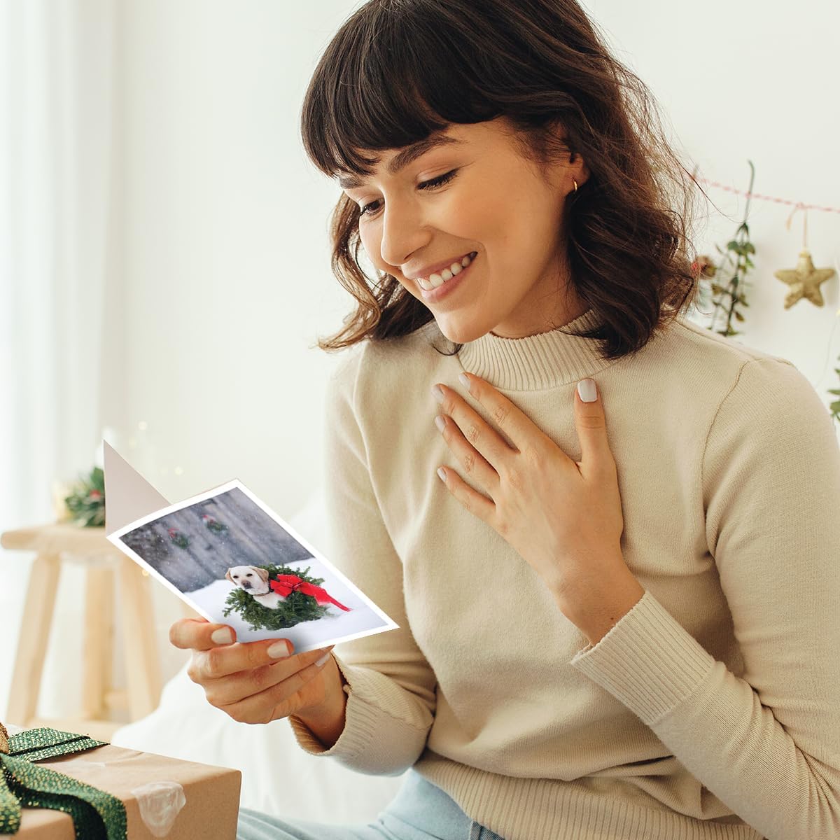 - CHARMING FESTIVE DESIGN β Spread joy, happiness, and warm holiday wishes to all of your loved ones with this pack of 6 holiday cards. Photographed by Barbara Peacock to capture the spirit of the holidays, this card features a Labrador dog in a field of snow, adorned with a holiday wreath.