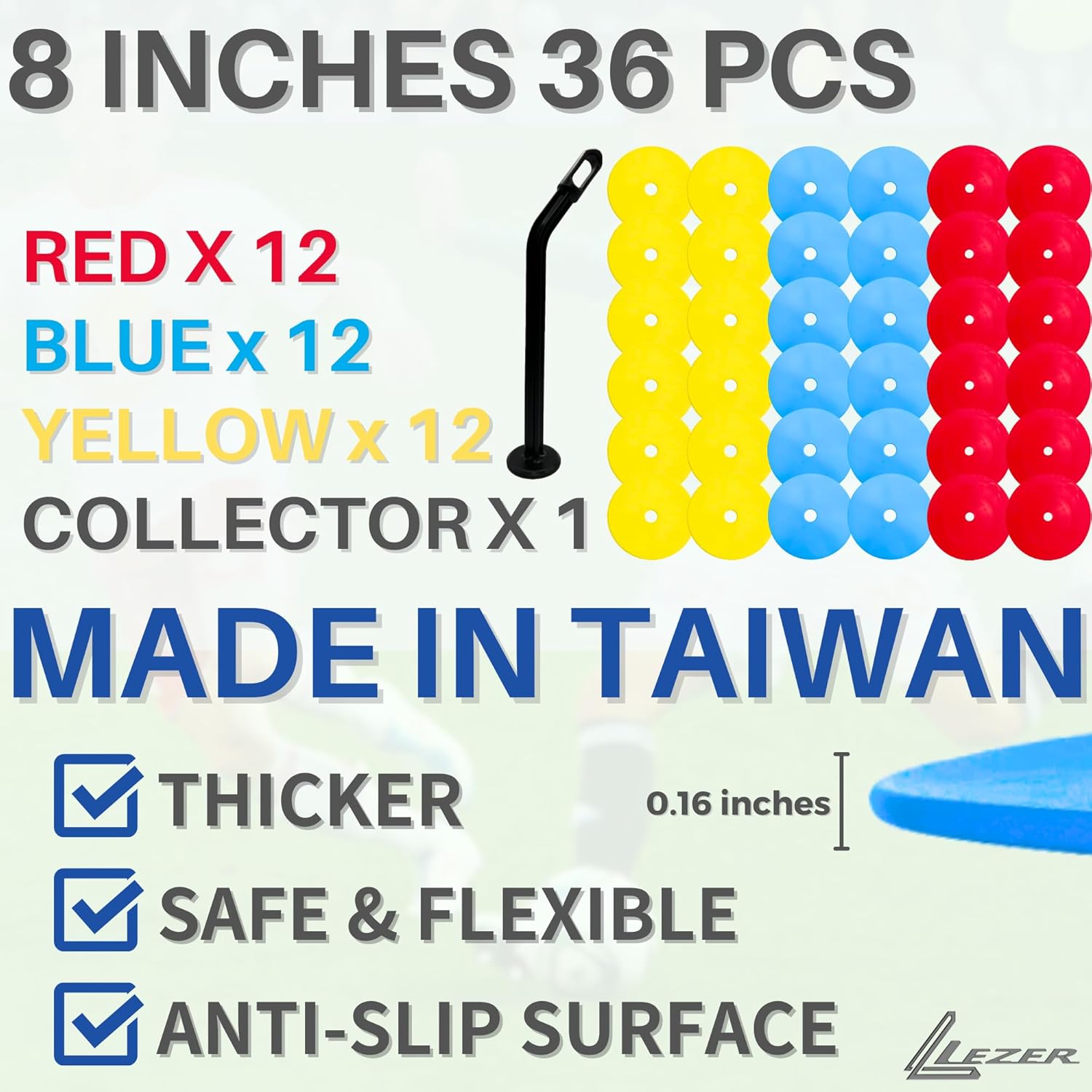 LEZER 6 Inch 8 Inch Flat Cones, Spot Markers, Soccer Cones, Field Court Markers, Sit Spots, Flat Discs, Soccer Training Equipment, Agility Practice, Football, Made in Taiwan