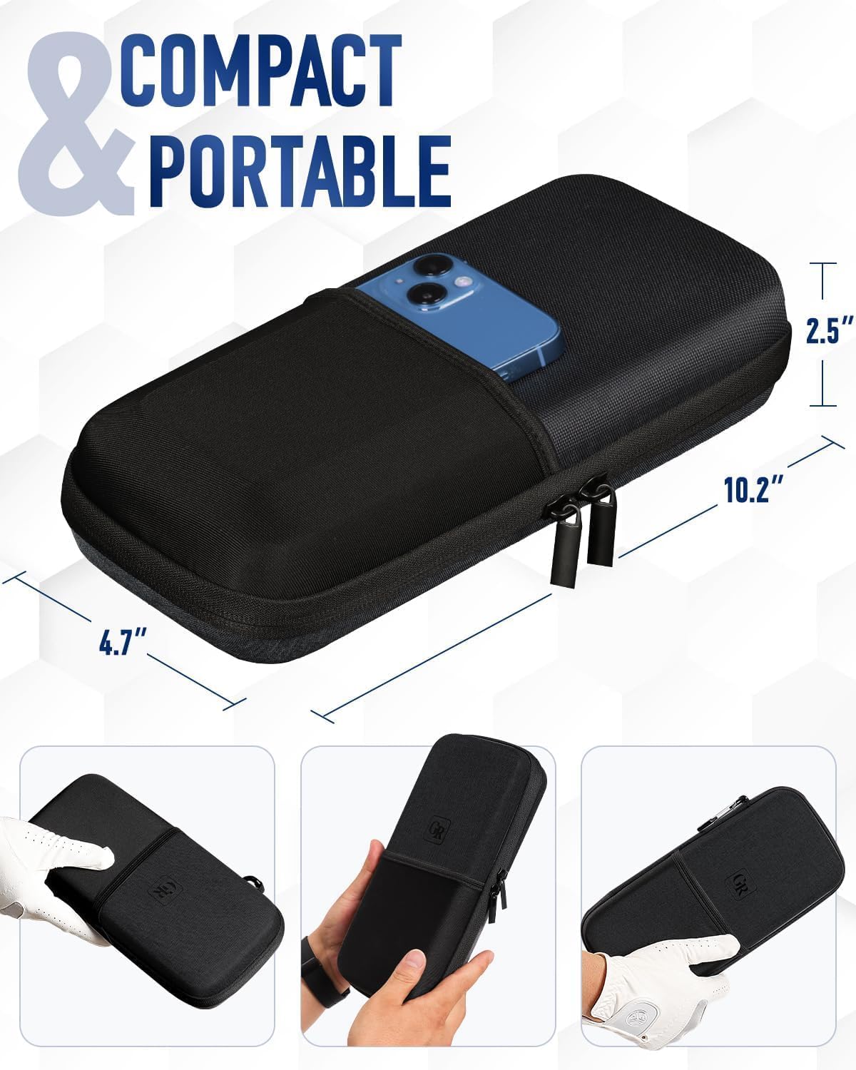- Durable & Waterproof: Made with hard shell EVA material, this case is waterproof, shock-resistant, and pressure-resistant. Measuring 10.2” x 2.5” x 4.7” and weighing 0.8 lb, it fits any golf bag and includes a D-ring for easy hanging