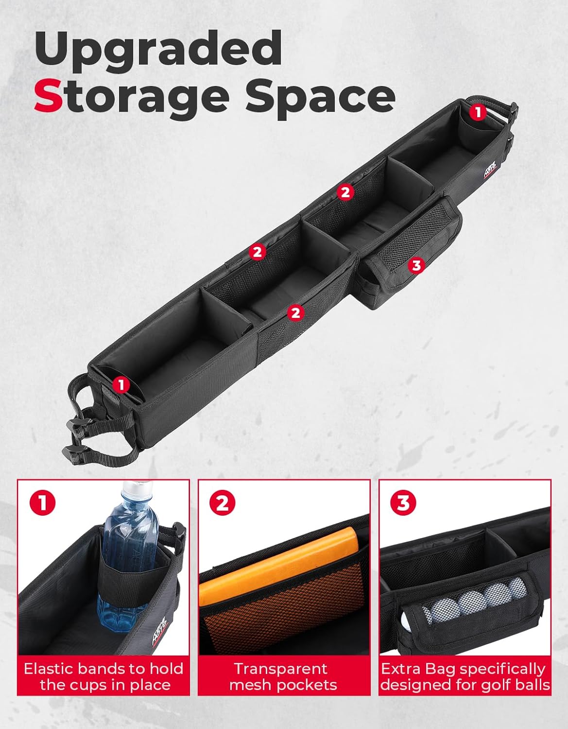 - Upgraded Storage Space: Equipped with elastic bands at both ends to secure water bottles, transparent mesh pockets for keys, mobile phones, wallets, and an additional pouch specifically designed for golf balls. Keep your golf cart organized