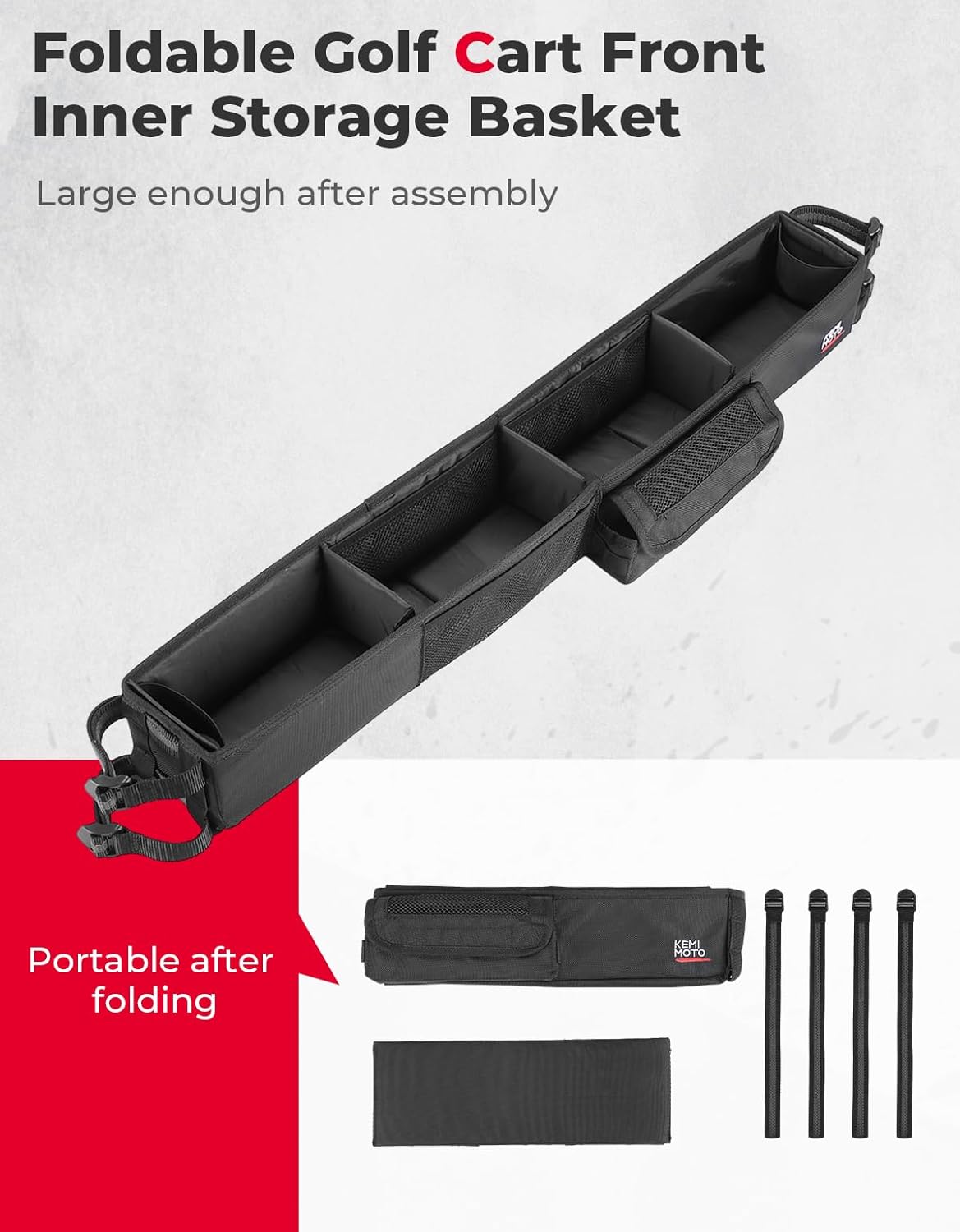 - Extra Large Storage Space: Our golf cart inner organizer size is 33.27'' L x 4.33'' W x 4.17'' H. One-piece solid design with 9.7L Volume. The included square magic sticker partition divides the box into four storage compartments, each offering a generous 2.3L capacity