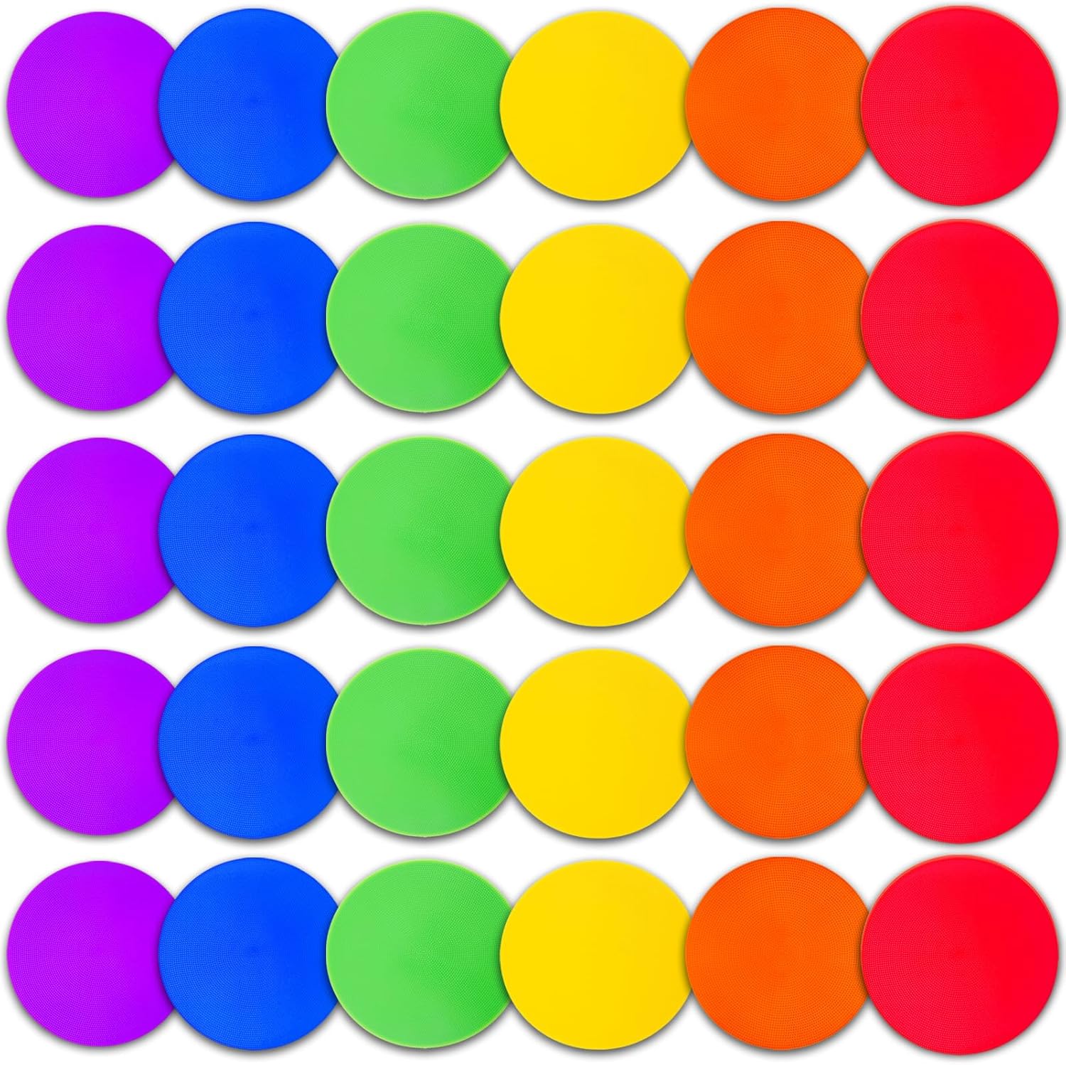 - 【BRIGHT, VIBRANT COLORS】The set includes 30 floor dots for classroom in 6 colors, packed in a drawstring bag. All floor spots are brightly colored for high visibility. The bright colors improve visual acuity making them the perfect equipment for mapping out training drills or a playing area