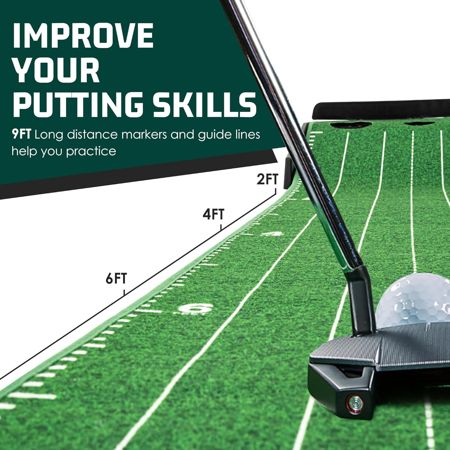 - 【Training Aid for Home & Office Putting Practice】- Must-have practice putting green indoor for mastering perfect speed and line. 9 ft putting mat to improve your putting game with real green speeds at home or in the office. Golf practice putting green indoor set makes a great gift for dad, mom, or a boss at work.