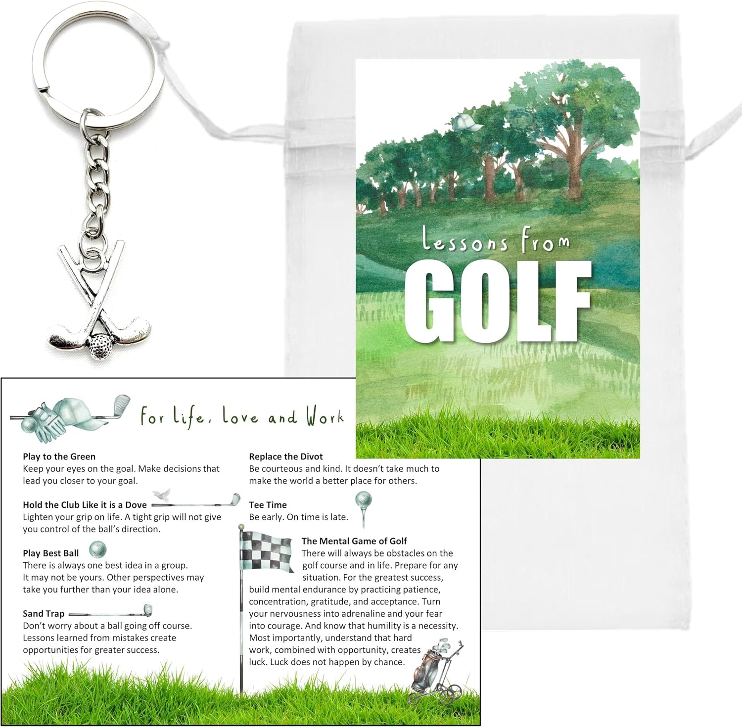 Smiling Wisdom - 10 Bulk Gifts - Wisdom From Golf 3.5x5in Cards & Keychains - Women Men Employees Staff - 30pcs - Silver Club Charms