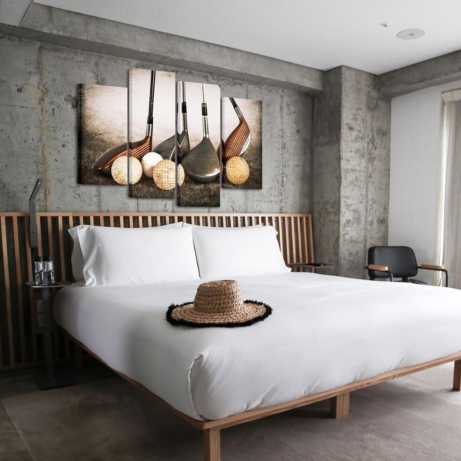 KREATIVE ARTS 4 Panel Vintage Sports Canvas Wall Art Rustic Golf Balls Picture Art Prints Still Life Poster Artwork Painting for Gym Man Cave Decor Ready to Hang 48x33 Inches