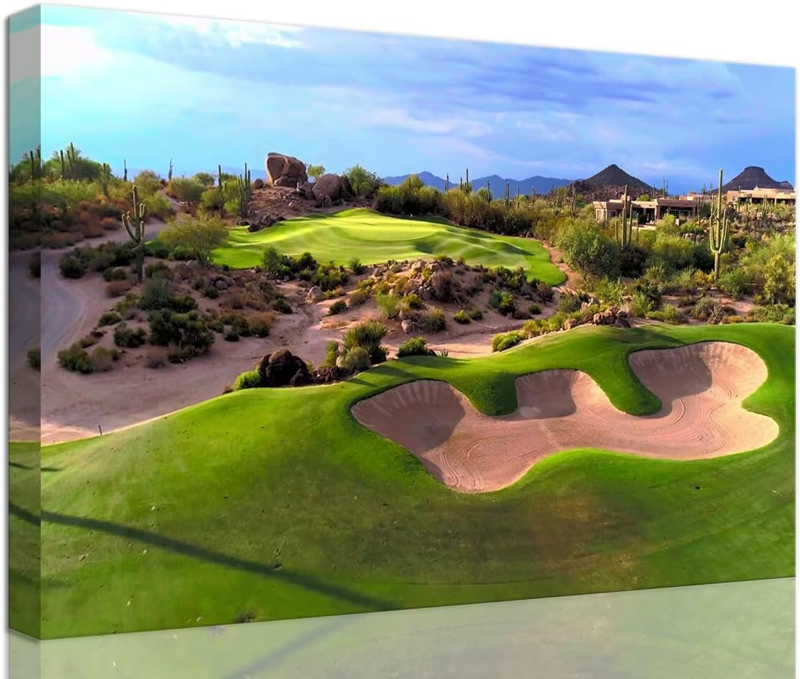 Arizona Desert Golf Course Wall Art Picture Golf Course Wall Decor for Living Room Bedroom Bathroom Home Decorations Golf Course Poster Framed Artwork Canvas Prints Ready to Hang(28''H x 44''W)