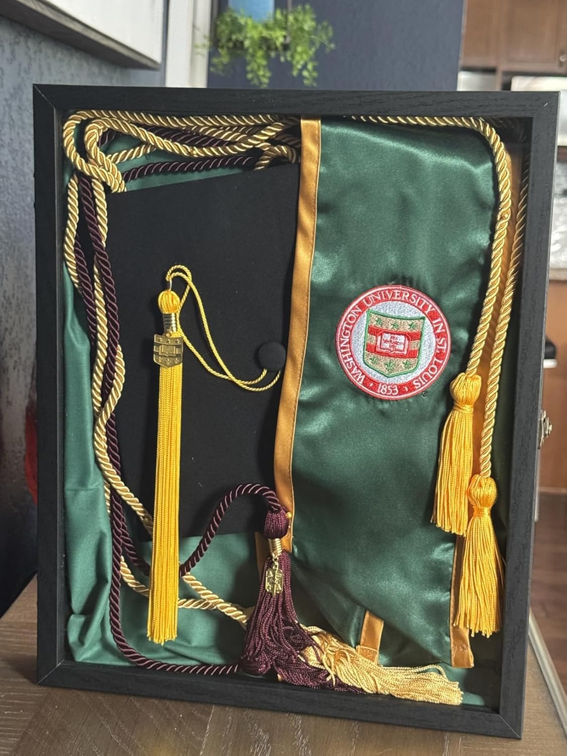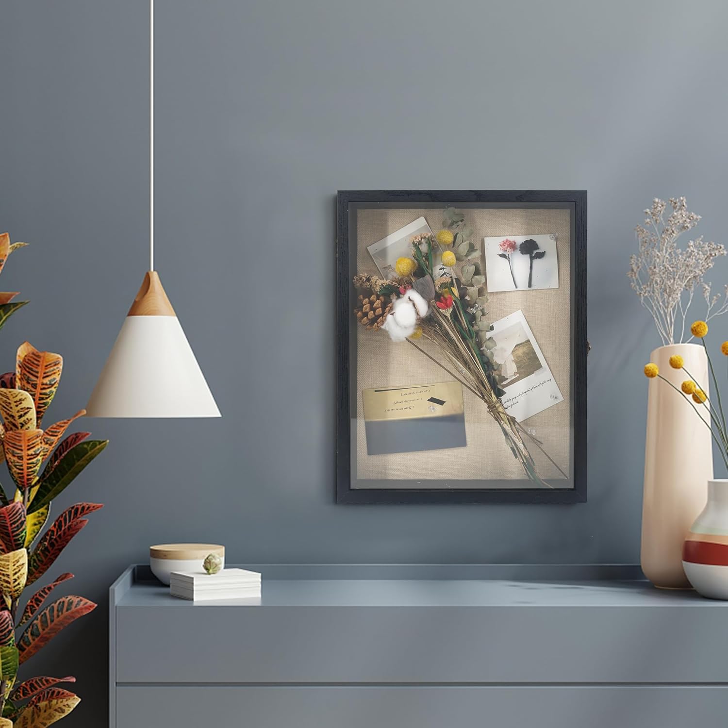GraduatePro Shadow Box Frame 13X16 Display Case with Linen Back, Real Glass Window Door with Hinge, Picture Frame Wedding Bouquet Memorabilia Medals Photos Memory Box for Keepsakes Rustic Black