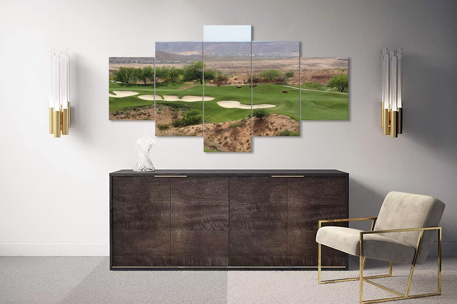 - 💝Golf course wall art size: 60Wx32H inch. Each panel size: 12x16inchx2,12x24inchx2,12x32inchx1,golf canvas prints easy ready to hang.