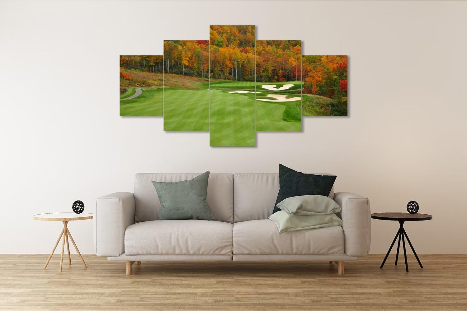 - 💝Golf course wall art size: 60Wx32H inch. Each panel size: 12x16inchx2,12x24inchx2,12x32inchx1,golf canvas prints easy ready to hang.