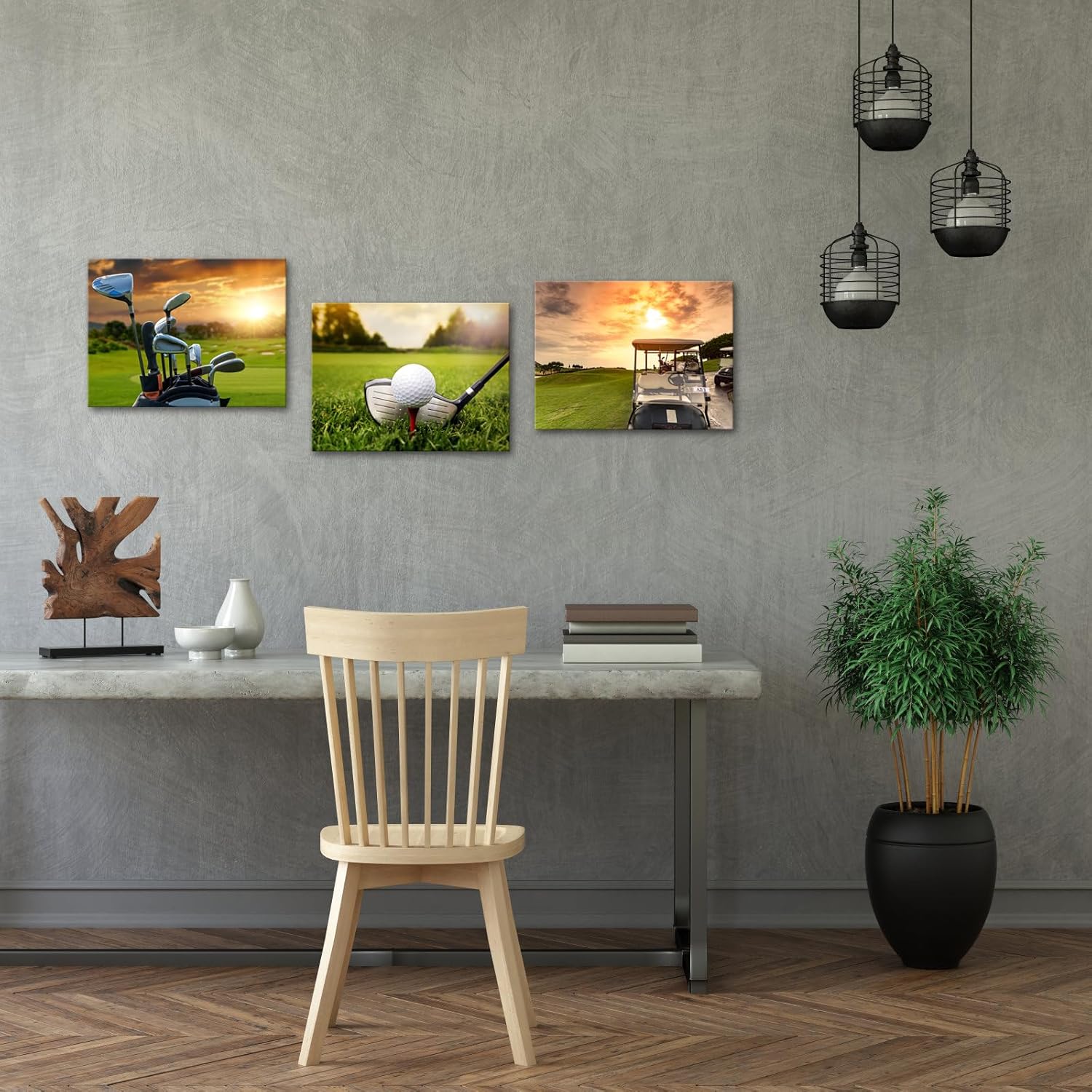 iKNOW FOTO 3 Piece Sports Canvas Wall Art Golf Course Scenery Sunset Framed Print Artwork for Home Decor Ready to Hang Each 12"x16"