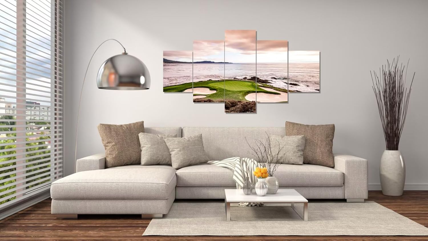 - 💝Golf course wall art size: 60Wx32H inch. Each panel size: 12x16inchx2,12x24inchx2,12x32inchx1,golf canvas prints easy ready to hang.