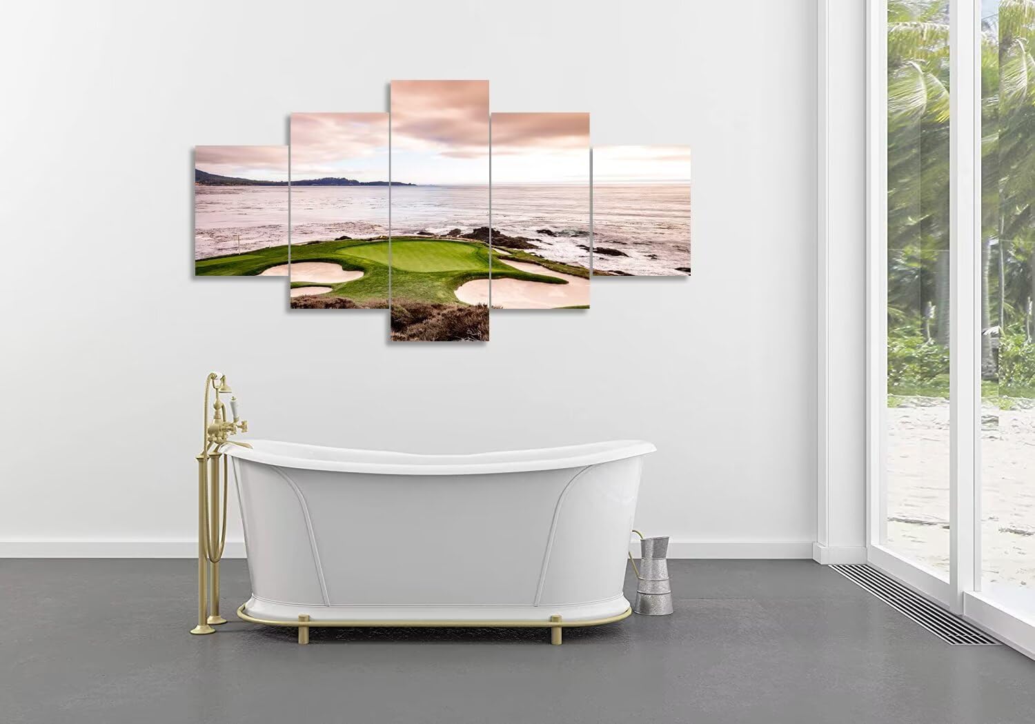 California Coastline Golf Course Wall Art Pictures USA California Golf Course Wall Decor for Living Room Bedroom Bathroom Home Decorations Canvas Prints Framed Ready to Hang(50''W x 24''H)