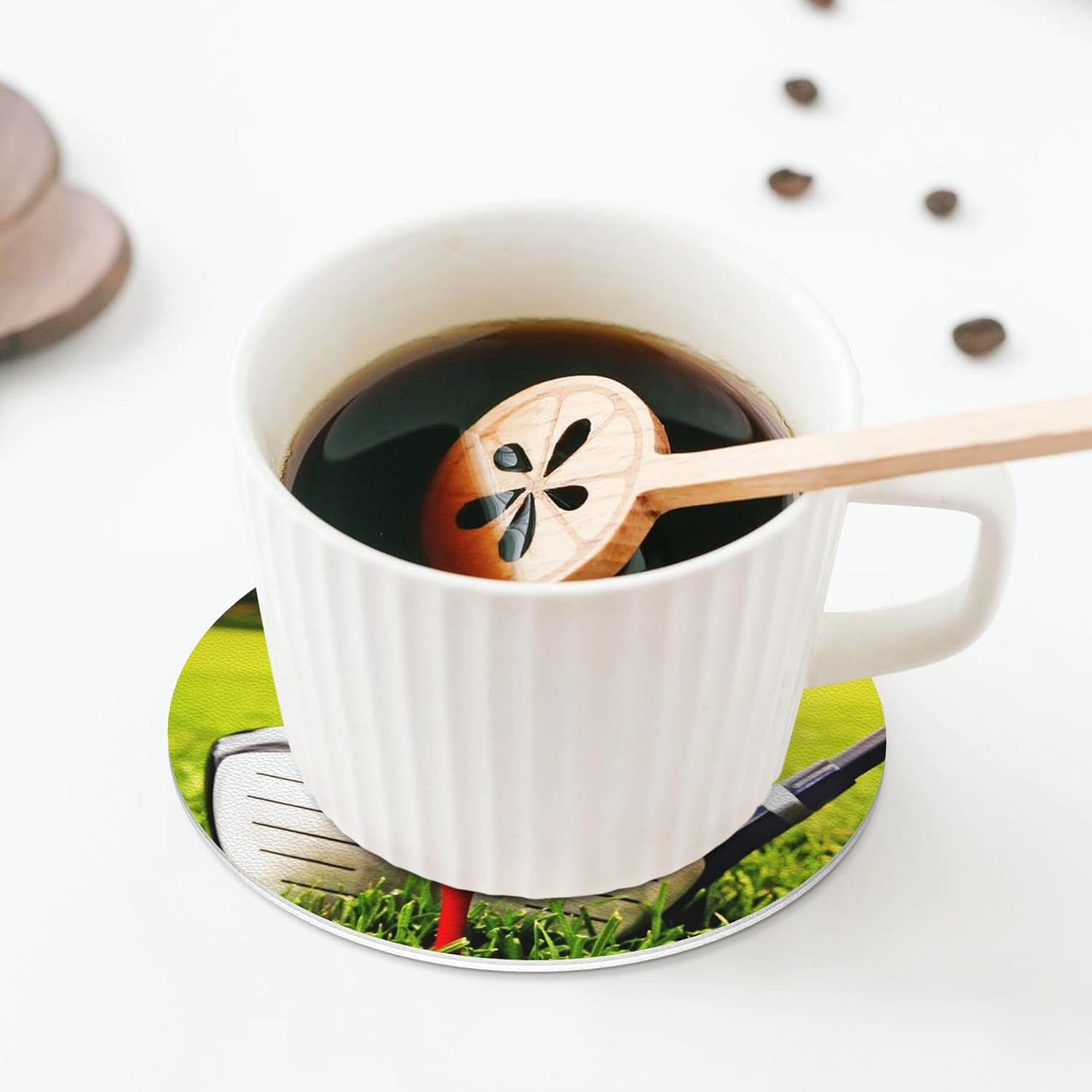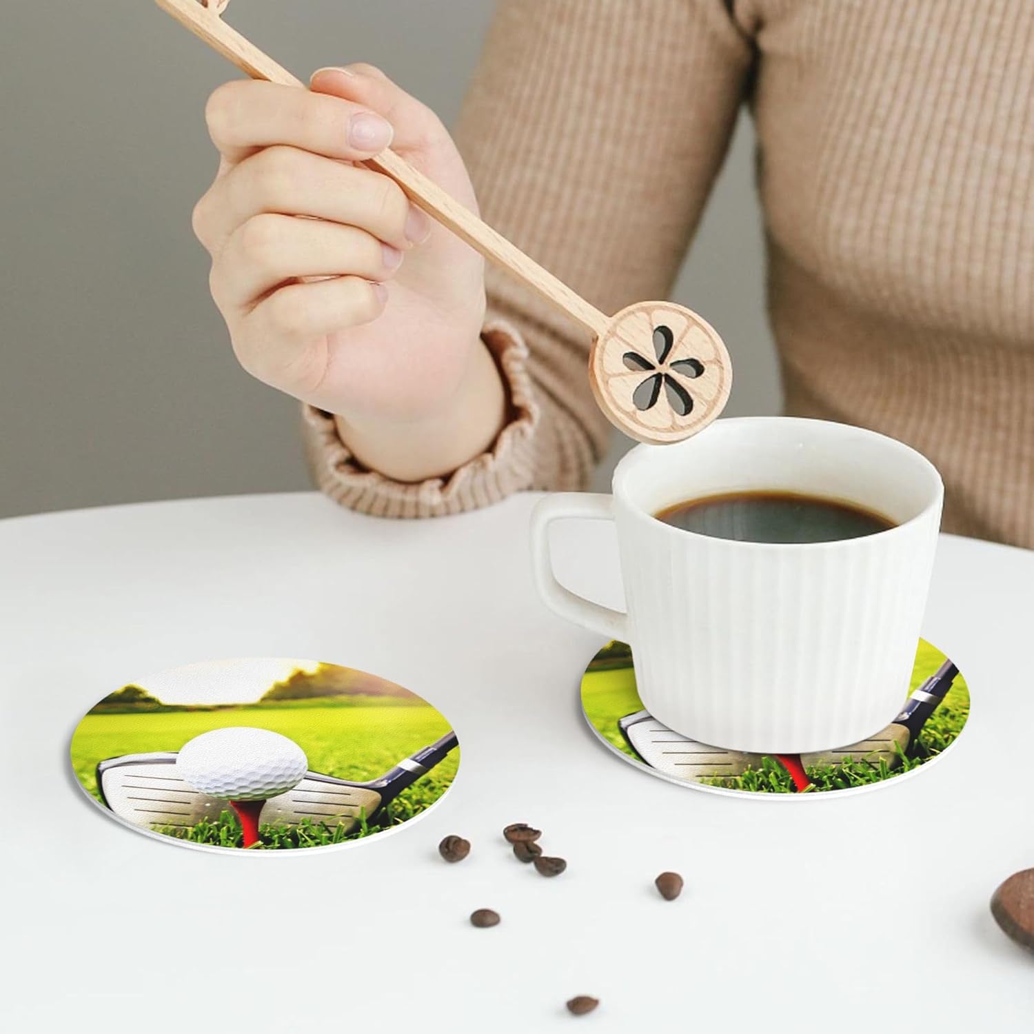 Coasters for Drinks Set of 6, Golf Ball Sports Drink Coasters for Coffee Table, Table Cup Mat Leather Desk Coaster for Drinks, Bar Coasters for Office Home Decor