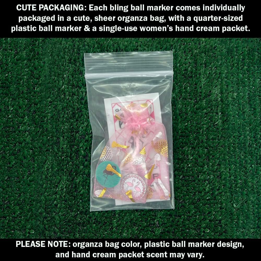 - The Giggle Golf bling Flamingos golf ball marker comes on a magnetic, white, plastic divot repair tool.