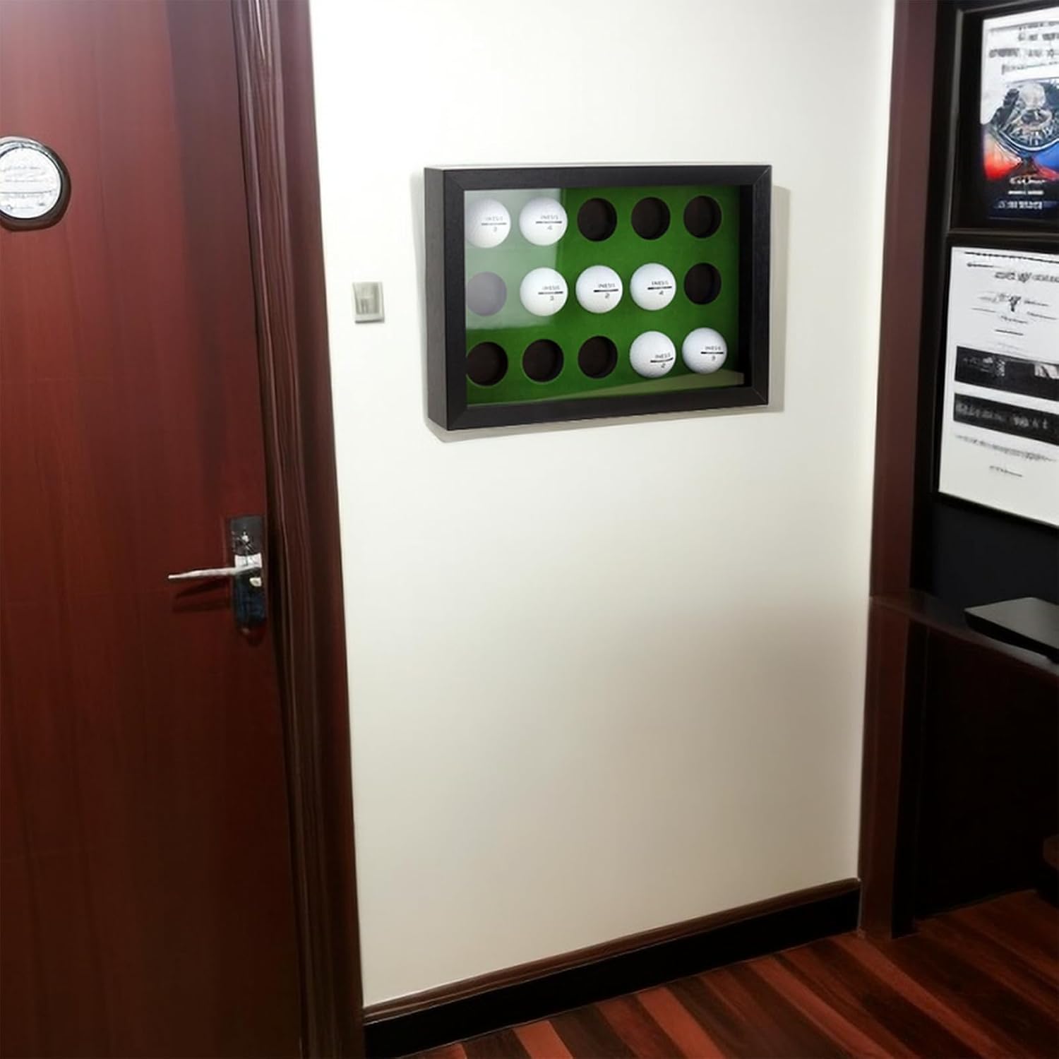 - This display case can be either placed on a flat surface or hung on the wall, allowing you to showcase your collectible golf ball in various settings, whether horizontally or vertically.
