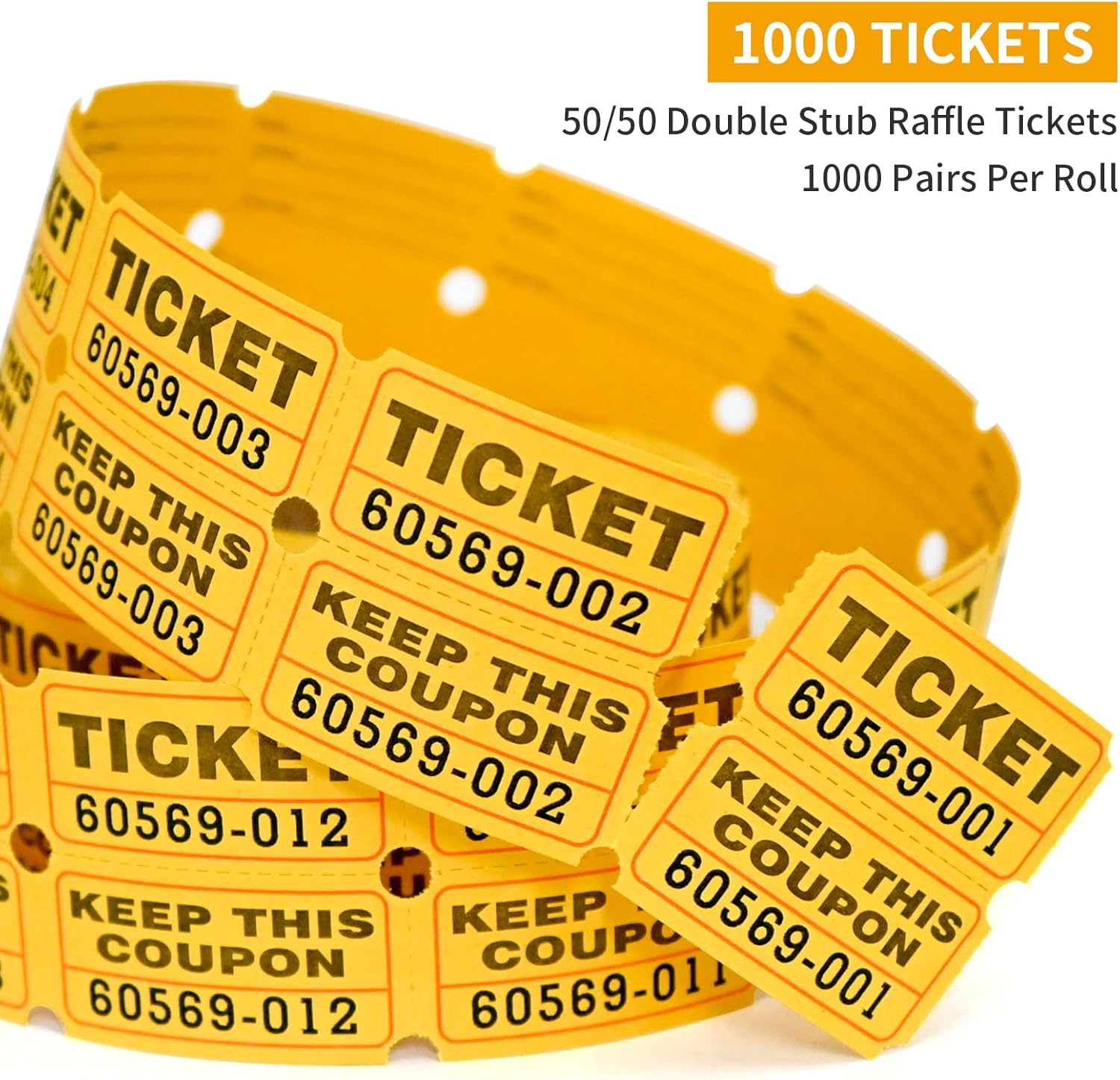- Rolls of 1000 double stub raffle tickets, with consecutively numbered and Perforated line ,easy to use save to time-yellow